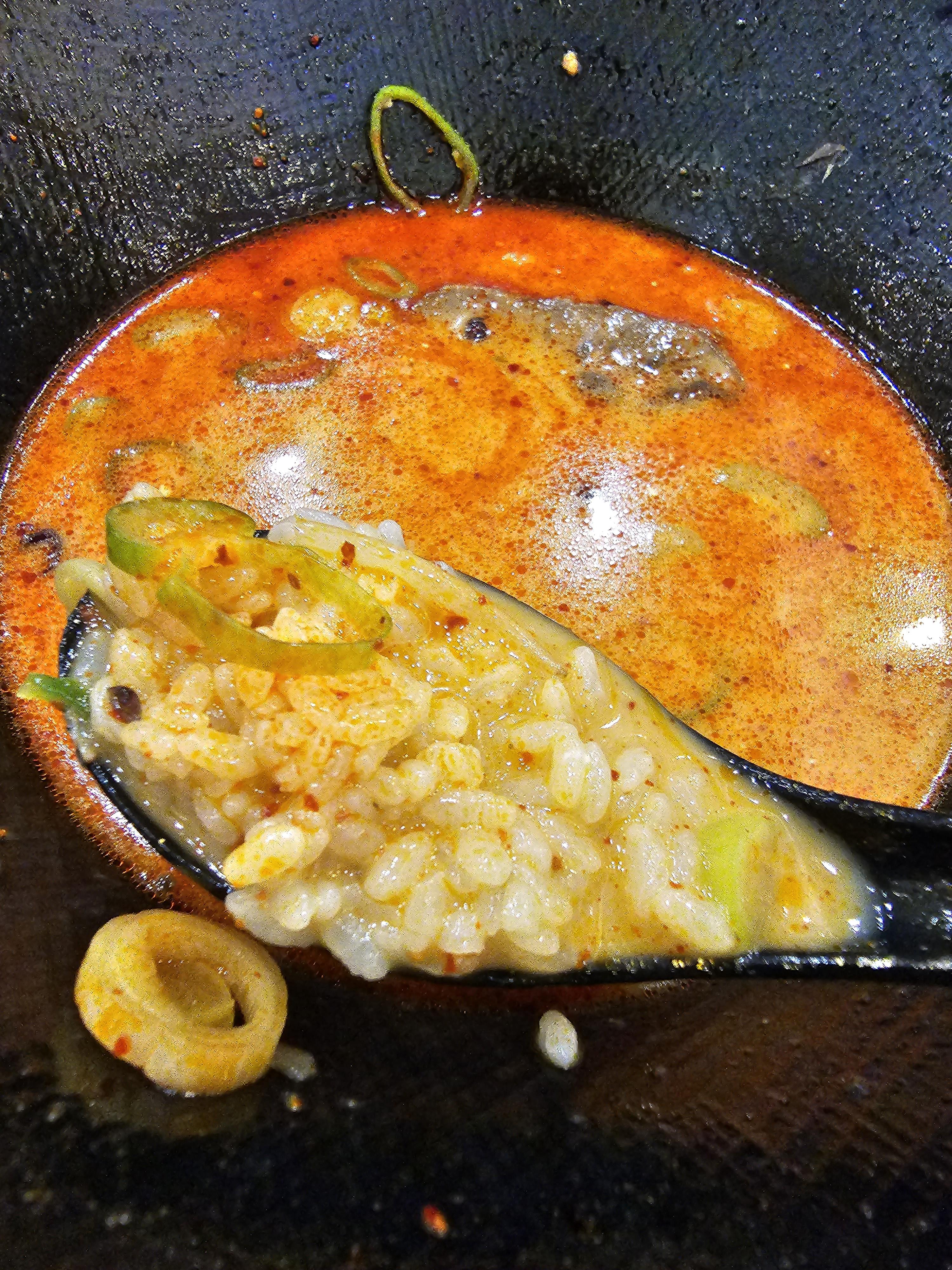 공깃밥을 라멘에 말아서 먹었습니다. 공깃밥이 무료인 점이 좋았네요. 라멘 국물이 밥 하고도 잘 어울려서 좋았습니다.