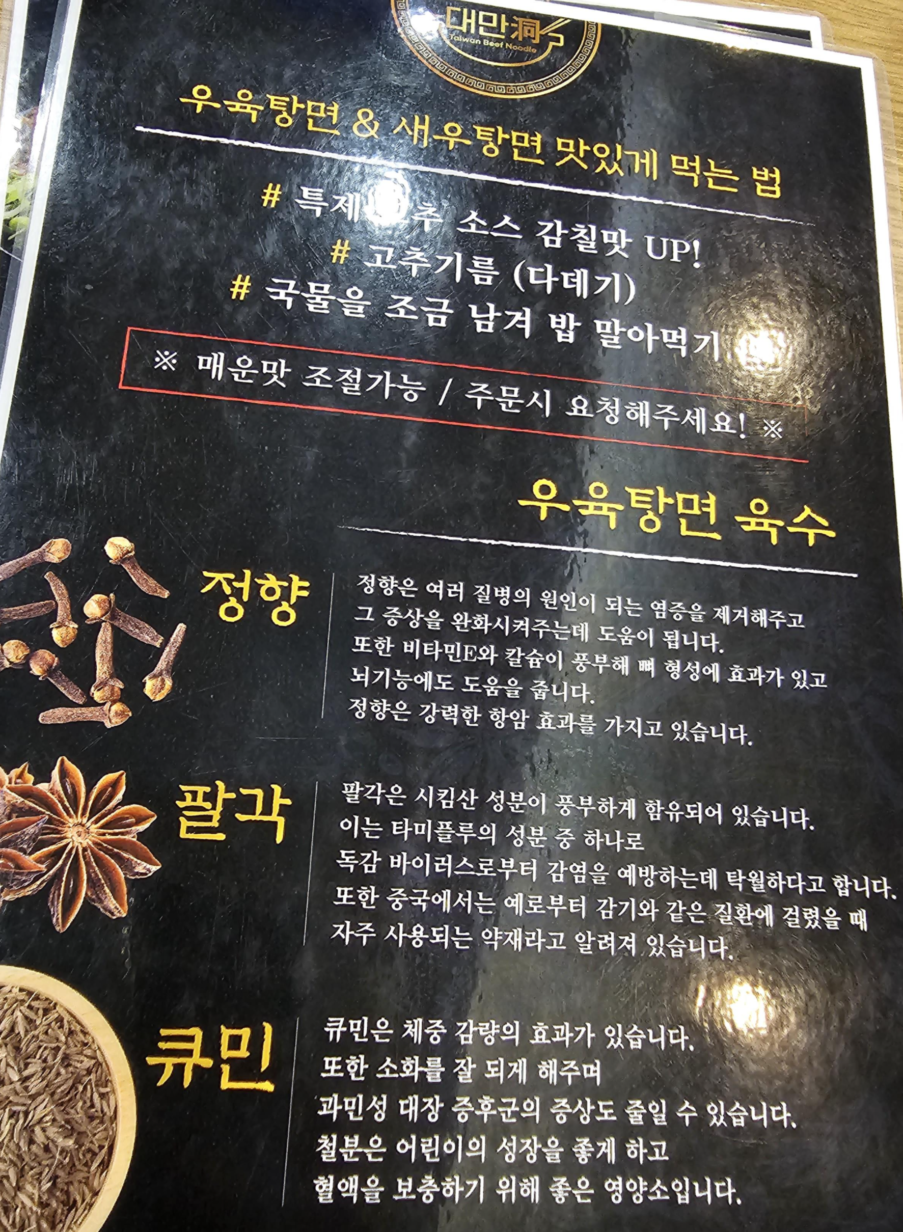 테이블에 있는 고추 양념? 기름?을 추가로 넣어서 먹어봤는데, 이걸 넣으면 약간 더 매워져서 제 입맛에 더 잘 맞았습니다.