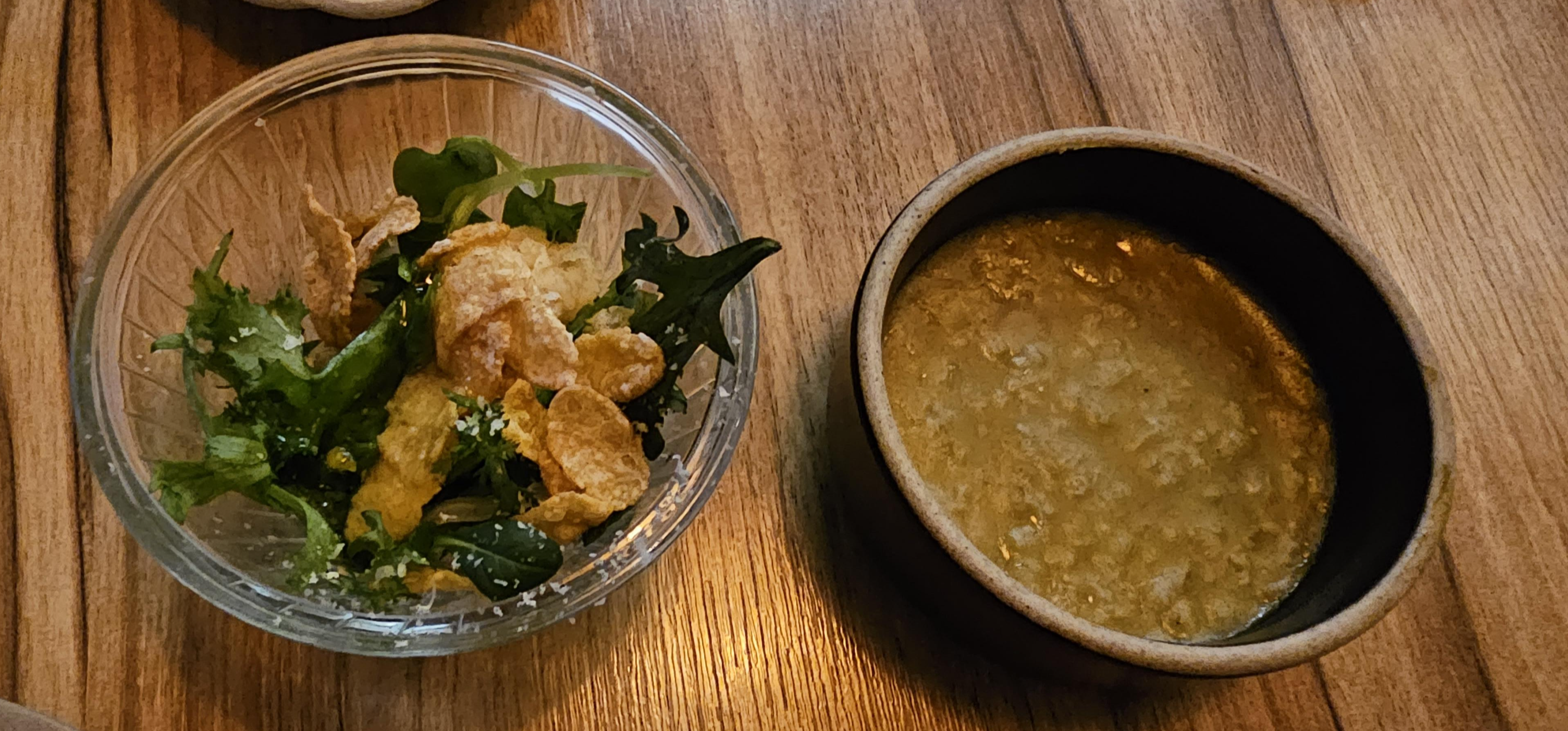 맨 처음 나온 음식은 샐러드와 죽이였습니다.