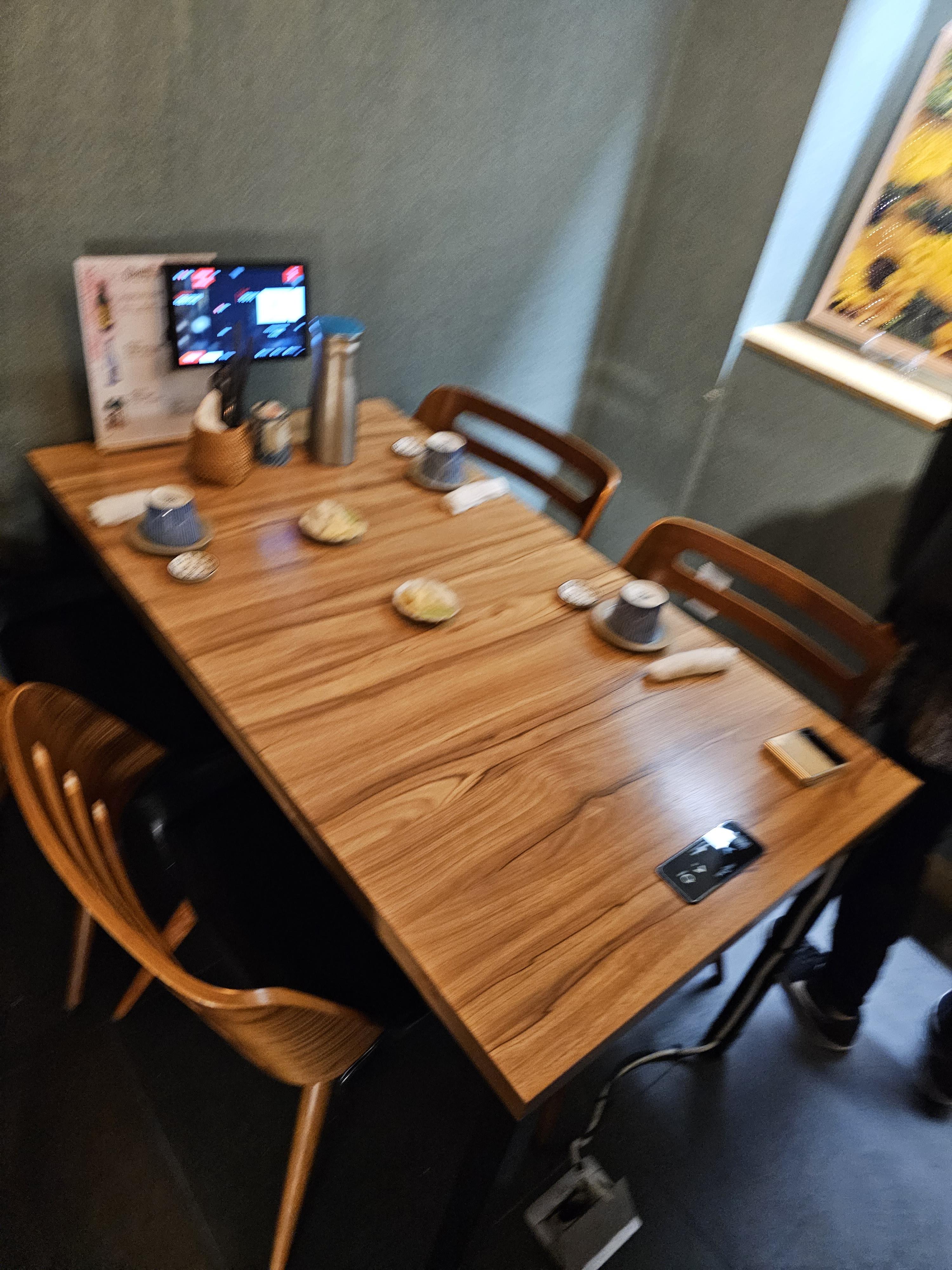 테이블에 태블릿 키오스크가 있어서 요리를 먹고 다음 요리를 주문하면 다음 요리를 가져오는 방식이었습니다.
