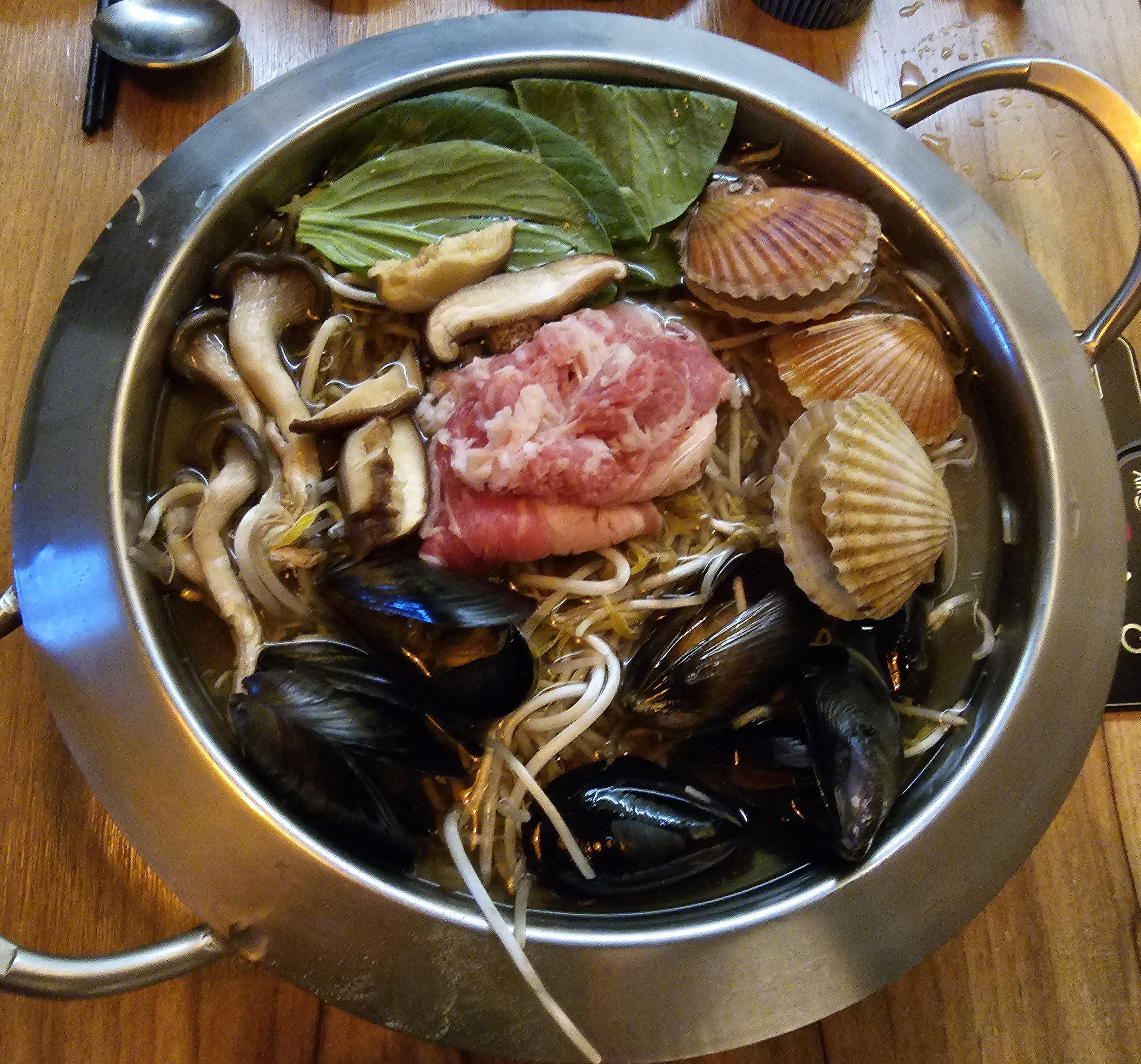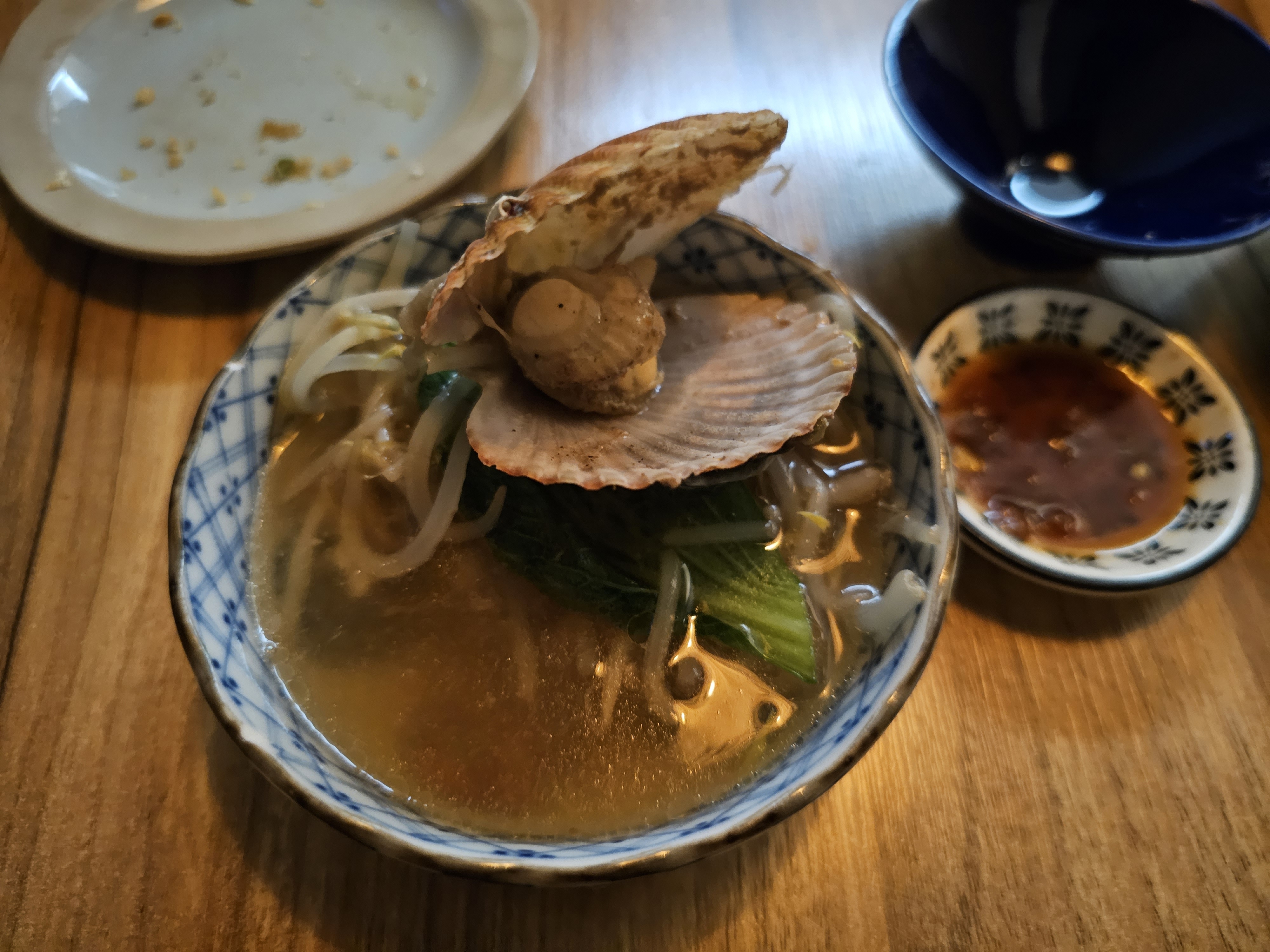 전골은 소고기는 샤부샤부 느낌의 스키야키 고기 맛이었고 국물도 스키야키 같은 맛이었습니다. 가리비는 이날 저희가 3명이 가서 3인분을 주문해서 3개가 들어간 것 같은데 국물이 짭짤한 게 맛있었습니다.