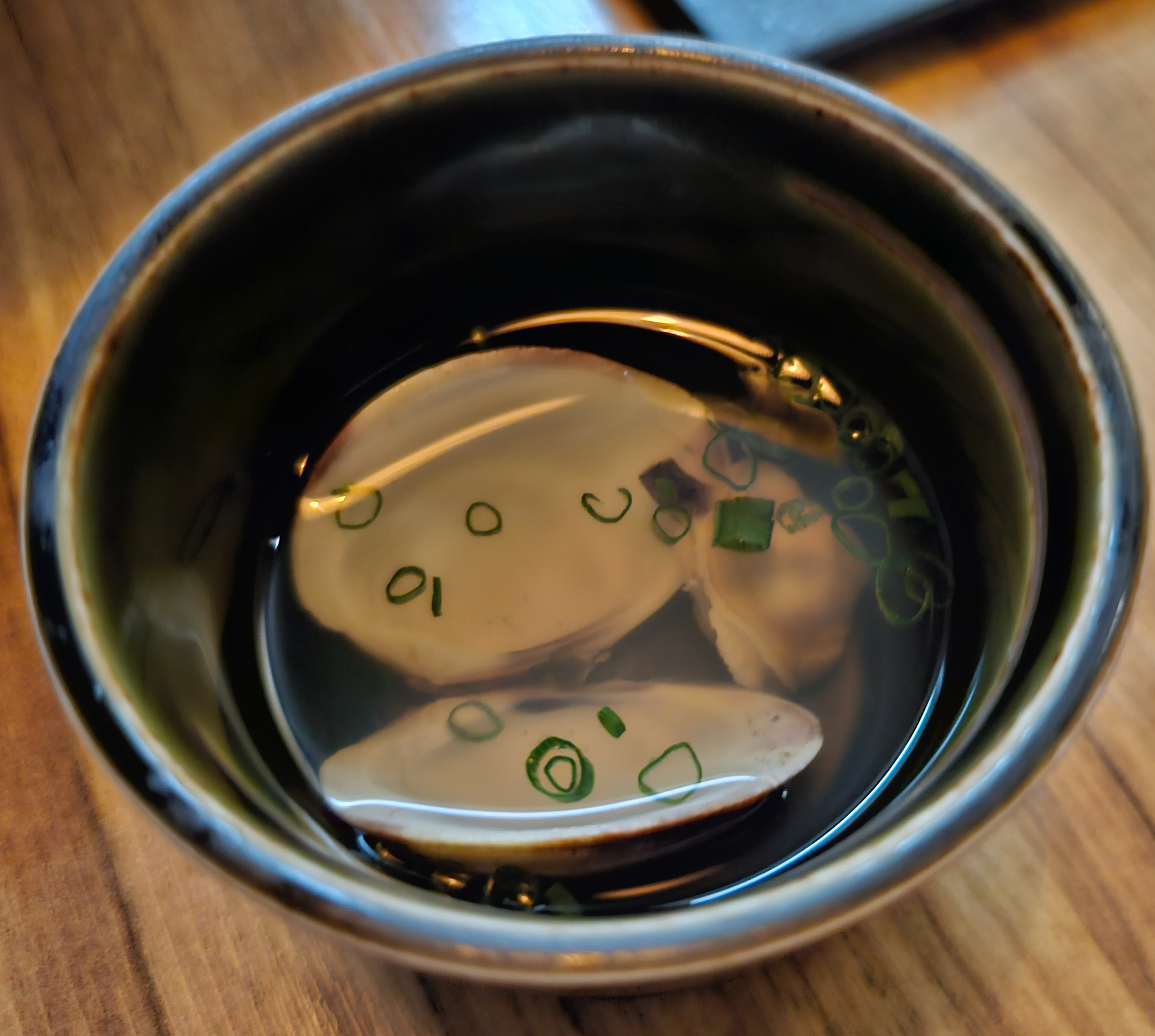 그다음은 후토마끼와 삼치초밥 그리고 조개차? 가 나왔습니다. 직원분께서 조개탕 스타일의 차라고 했는데 그냥 간이 안 쌘 조개탕이었습니다.