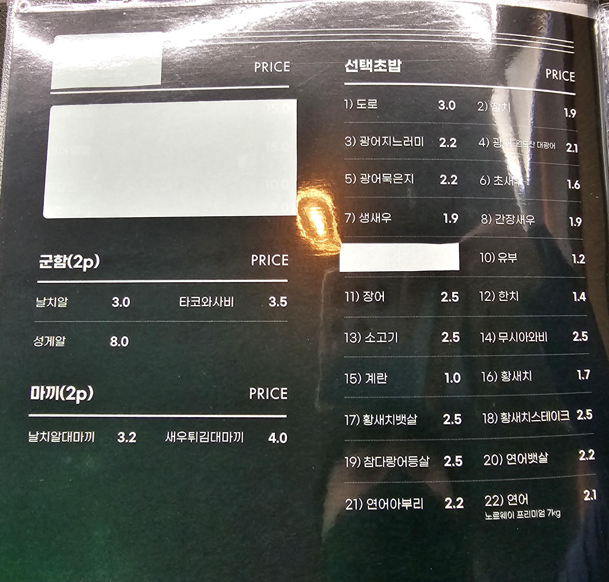 전체적으로 초밥은 맛있었지만 몇몇 초밥은 제 취향이 아닌 게 있었네요.
