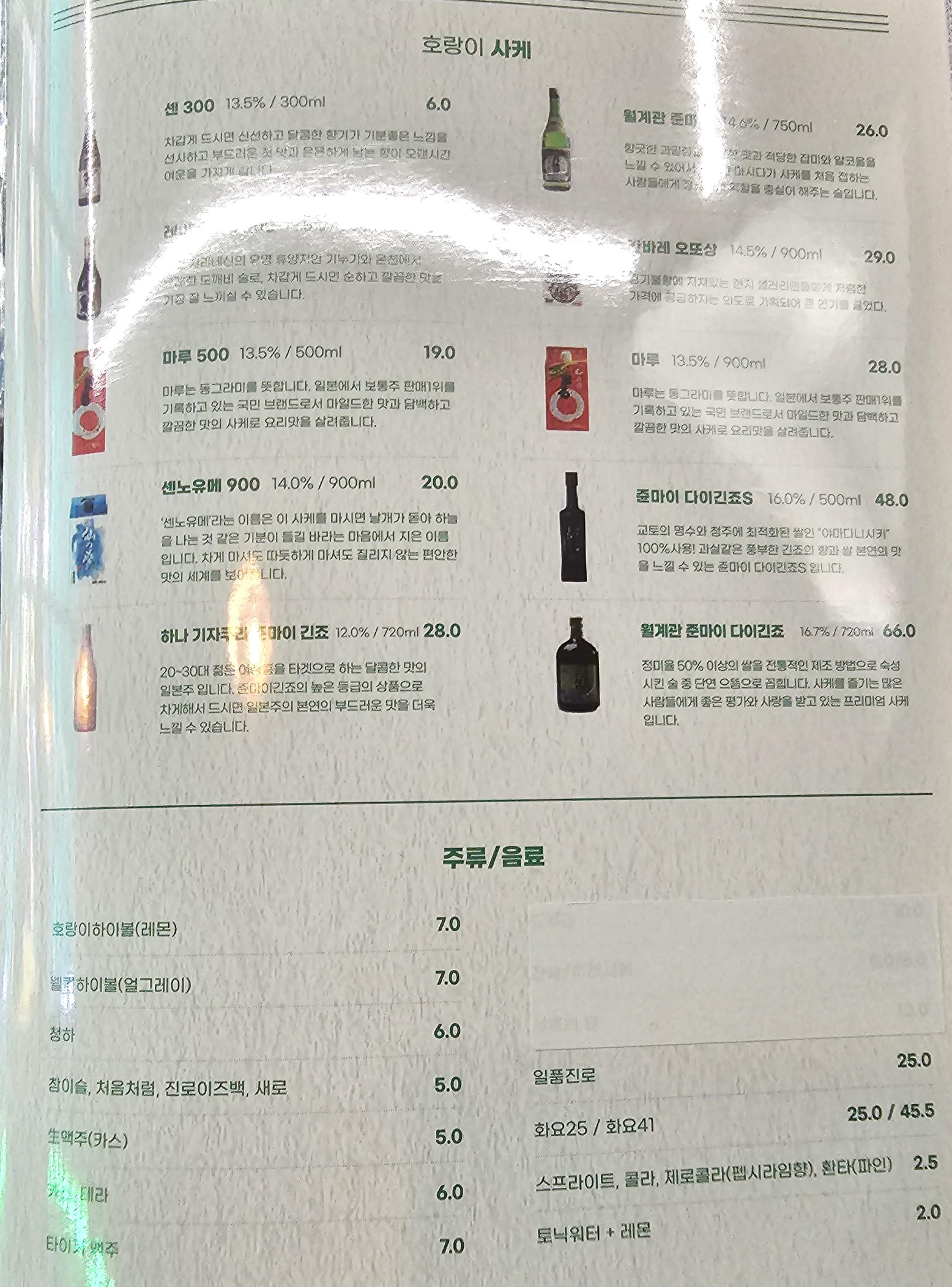 메뉴판은 사시미부터 런치 세트 탕류부터 단품 초밥까지 엄청 메뉴가 많네요.