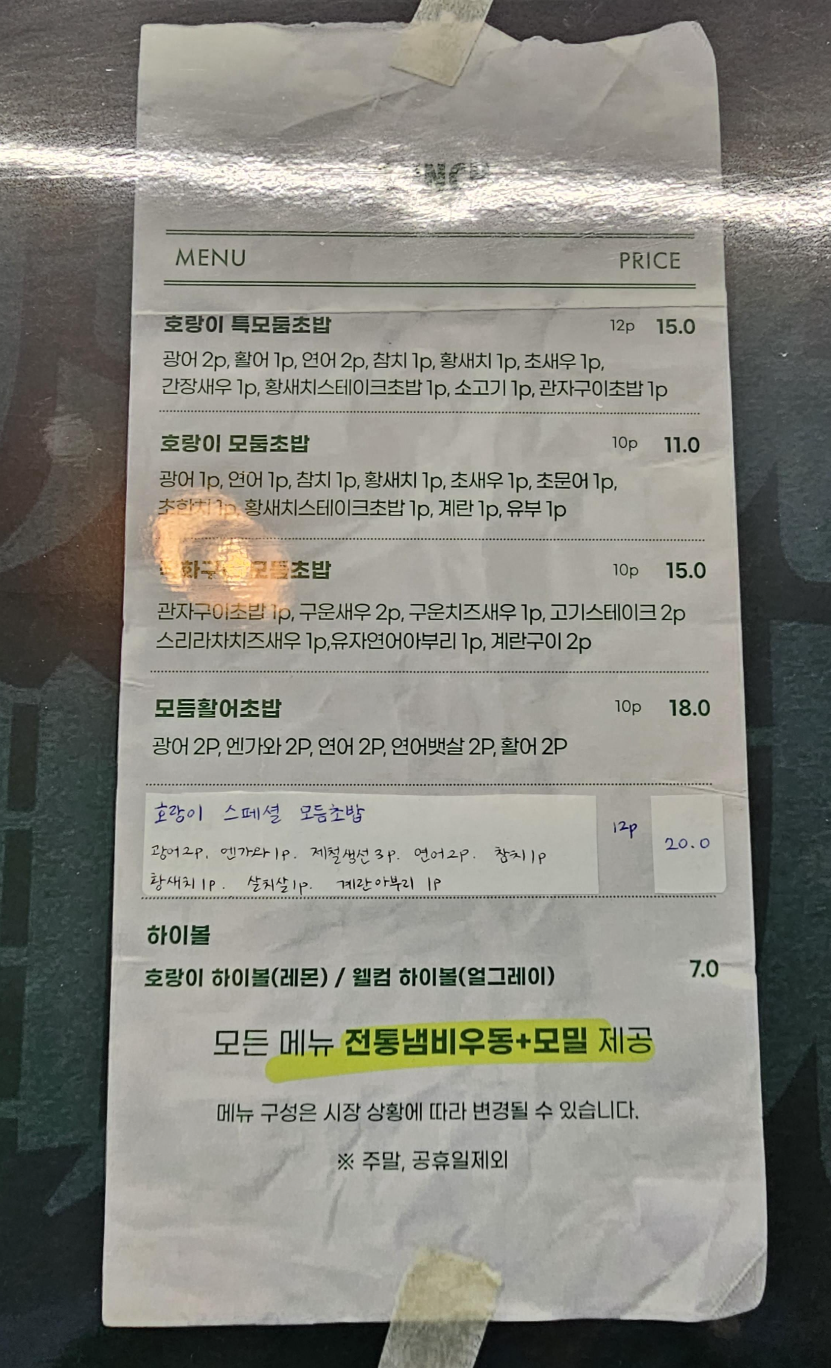 이번에는 특을 먹었는데 다음에는 일반 호랑이 모둠초밥을 먹어봐야겠습니다.
