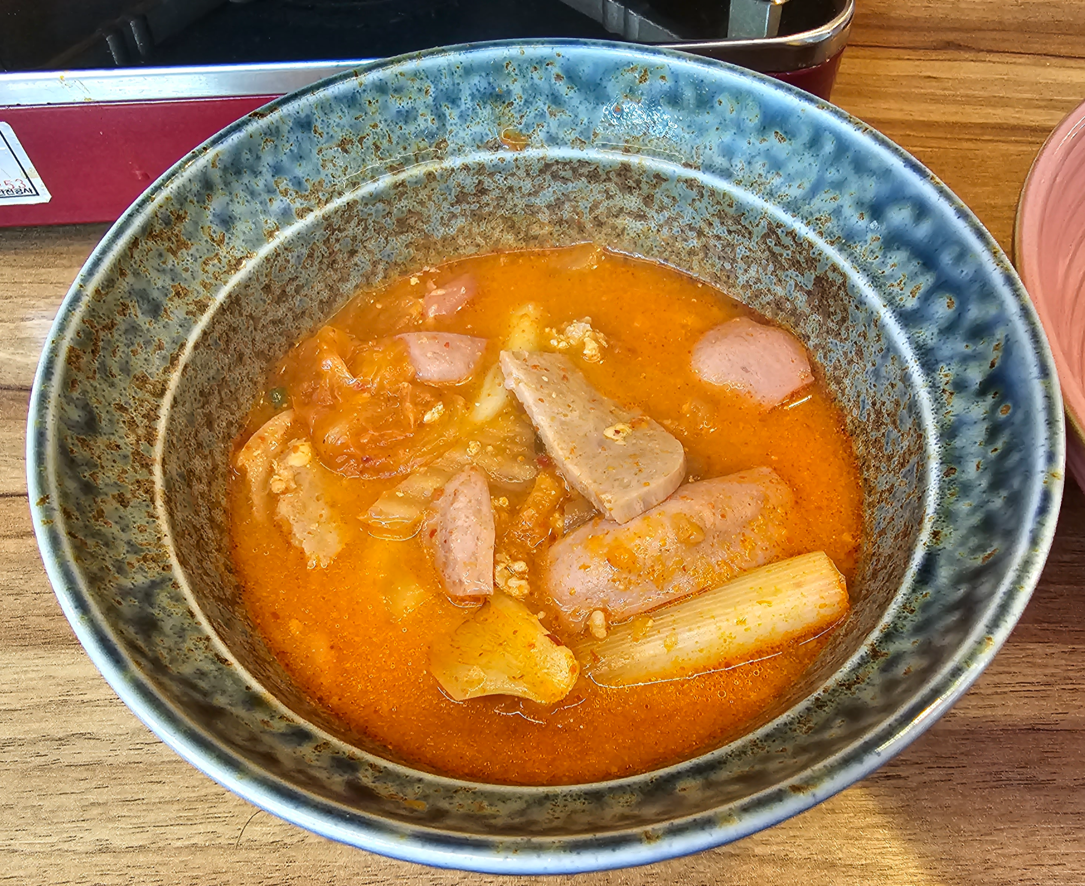 맛은 있었지만 부대찌개 자체의 맛은 가산디지털단지 근방에서 먹었던 다른 부대찌개 식당인 놀부부대찌개나 JVL부대찌개보다 마일드 하다고 할까요. 순한 느낌이었습니다. 다른 식당보다 소시지나 햄의 퀄리티도 조금 떨어지는 것 같았습니다.