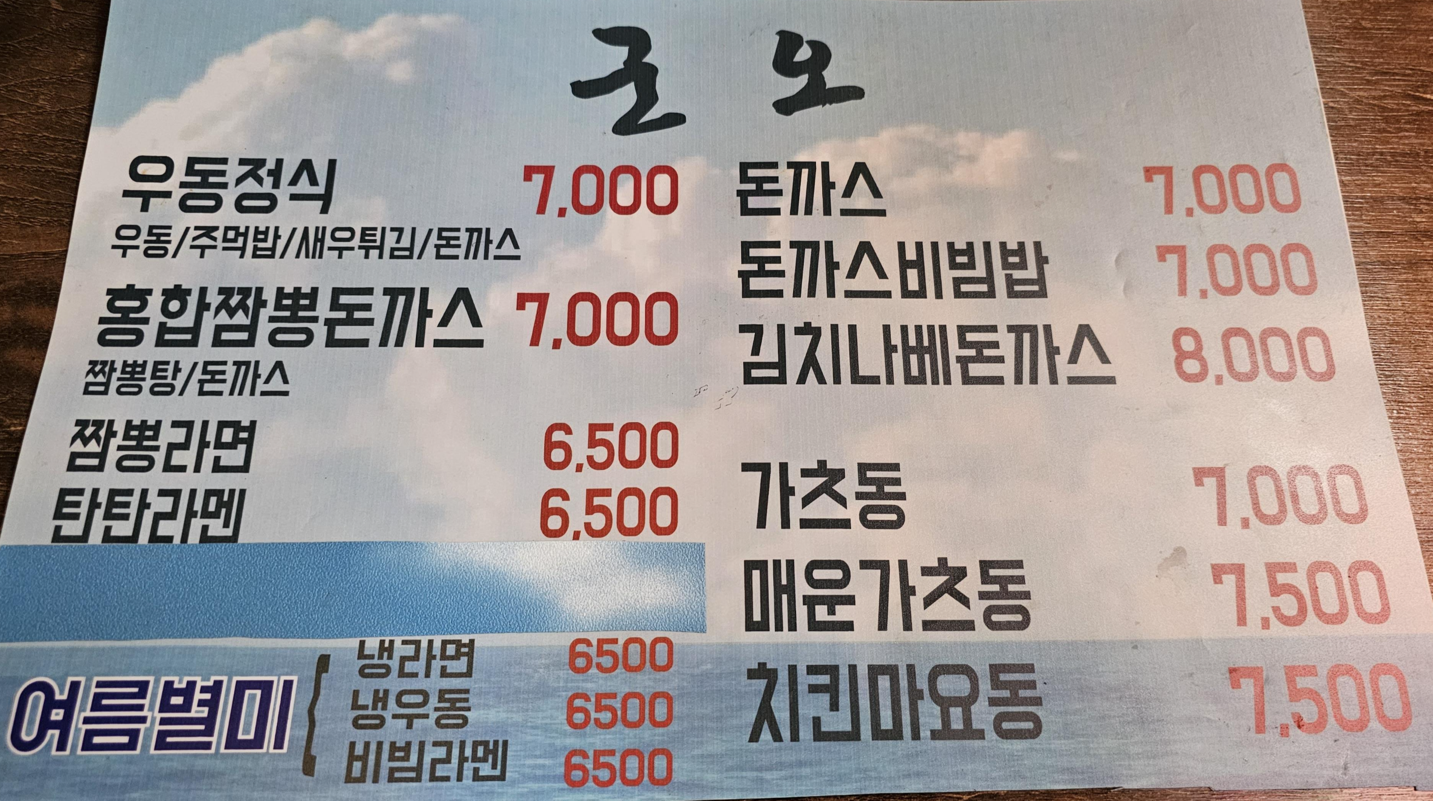 메뉴는 우동, 라멘, 돈가스 등을 팔고 있었습니다.