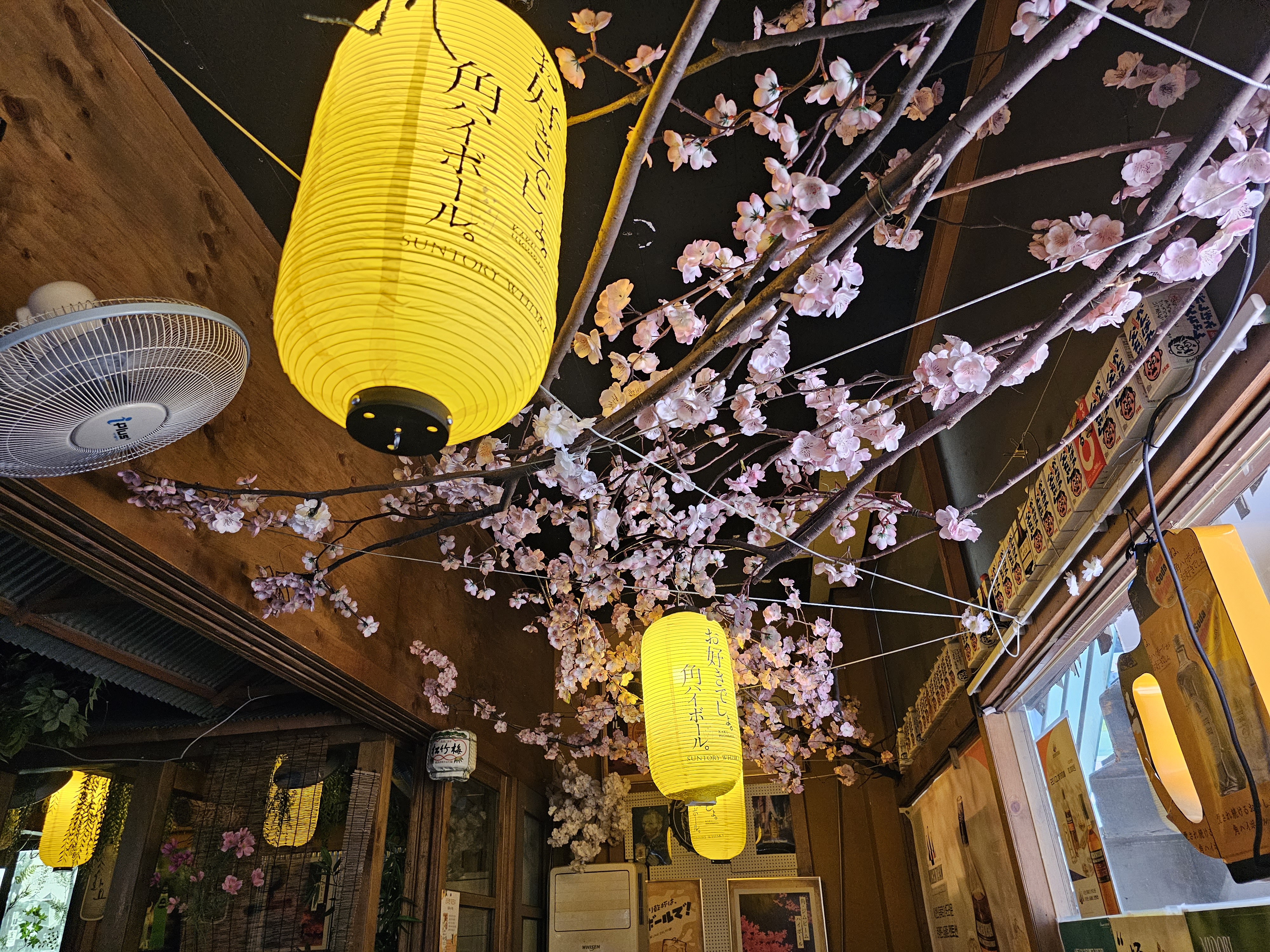 내부는 이자카야라는 걸 보여주듯이 벚꽃등 일본 느낌나게 인테리어가 되어있었습니다.