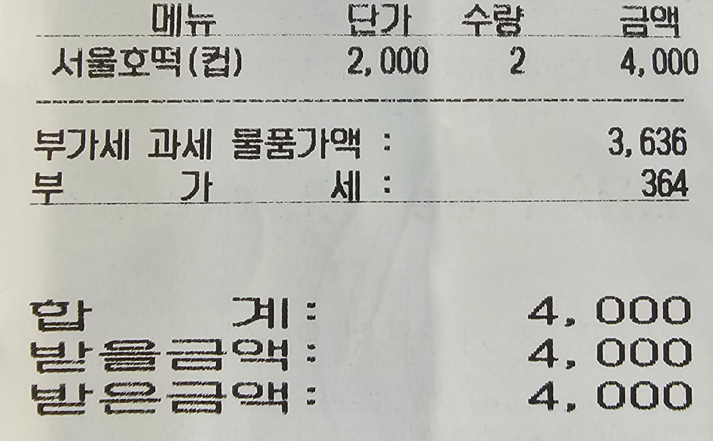 주문은 키오스크로 가능했는데, 저는 서울호떡(컵)을 주문했습니다.