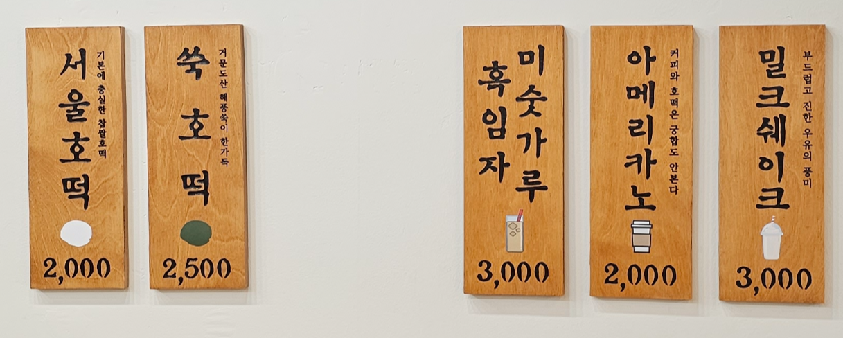 메뉴는 호떡과 쑥호떡 그리고 미숫가루와 아메리카노등을 팔고 있었습니다.
