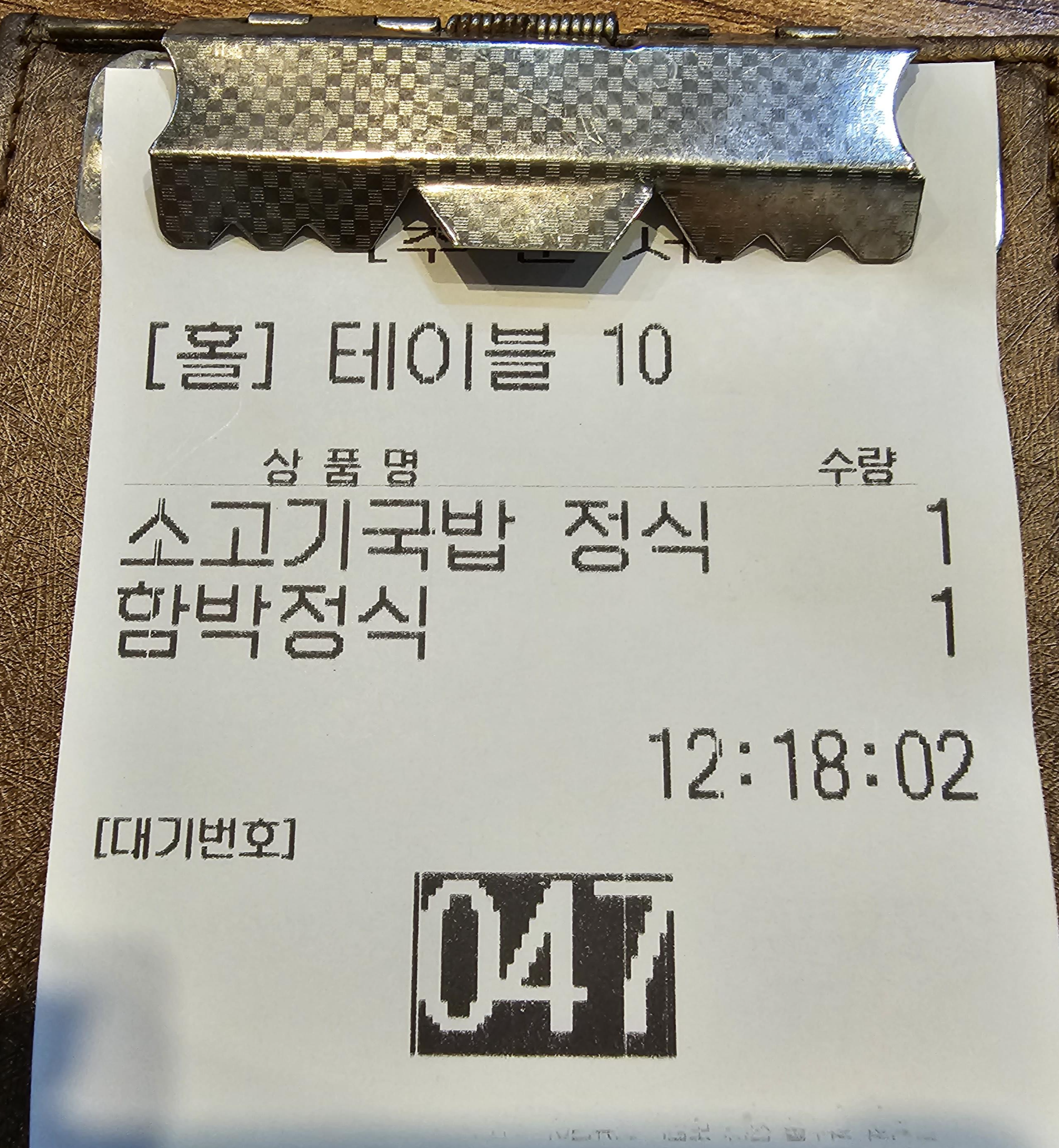 저는 소고기국밥 정식(12,000원)을 같이간 직장동료는 함박 곰탕 정식(14,500원)을 주문했습니다.