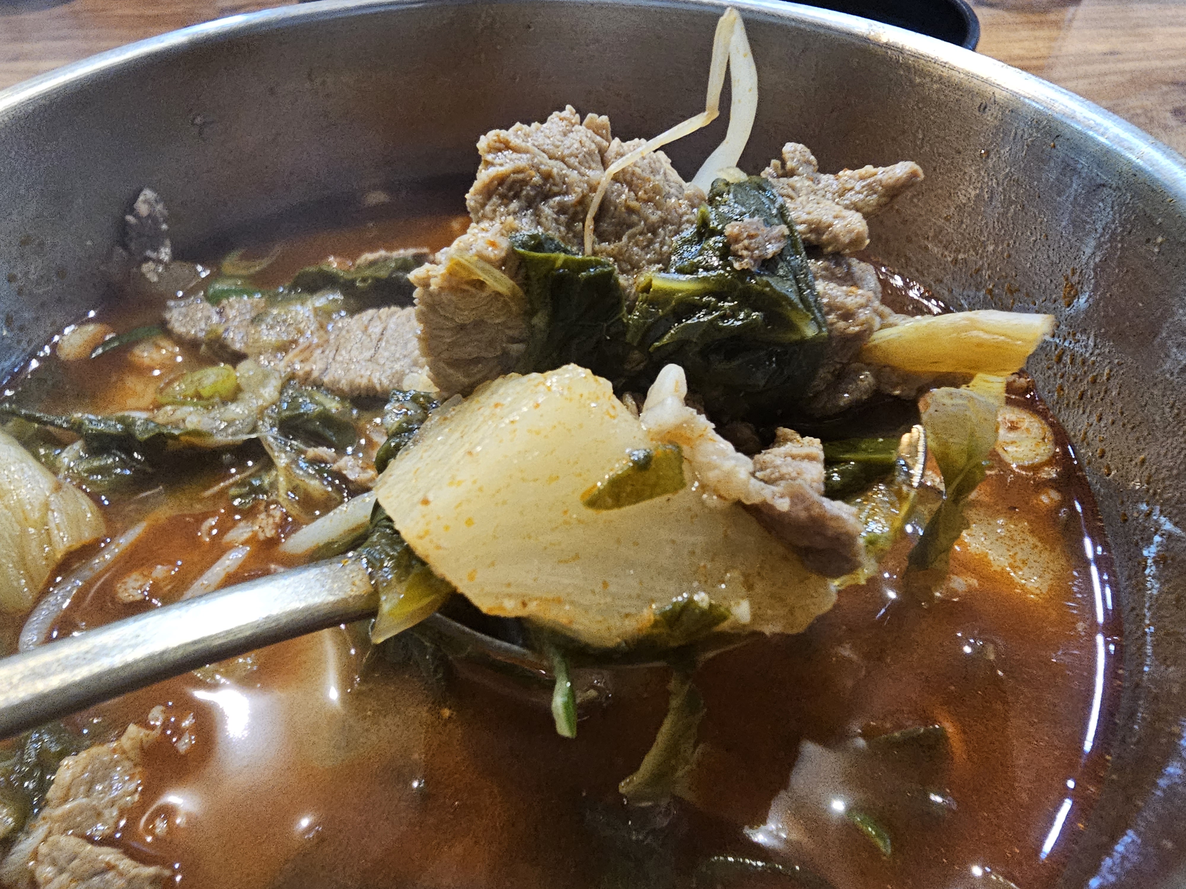 다만 빨간 국물을 보고 칼칼하고 얼큰한 맛을 생각했는데 하나도 맵지 않았습니다. 따끈해서 겨울에 먹으면 더 맛있게 먹었겠지만, 매운맛을 좋아하는 저에겐 애매한 맵기여서 다음에 먹는다면 곰탕을 먹을 것 같네요.
