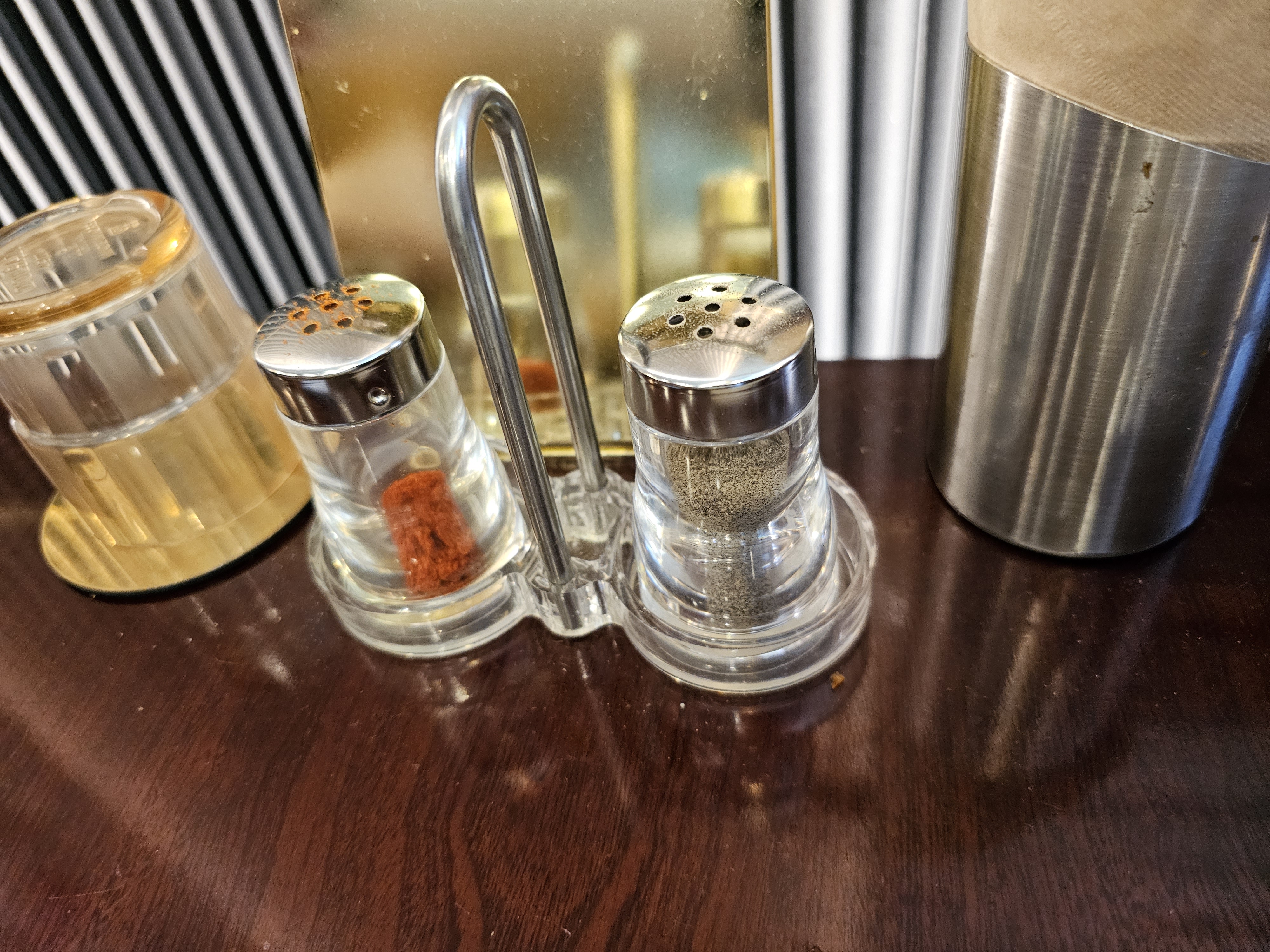 테이블에는 케이엔페퍼와 후추가 잇는데, 케이엔페퍼는 굳어있어서 잘 안 나오더군요.