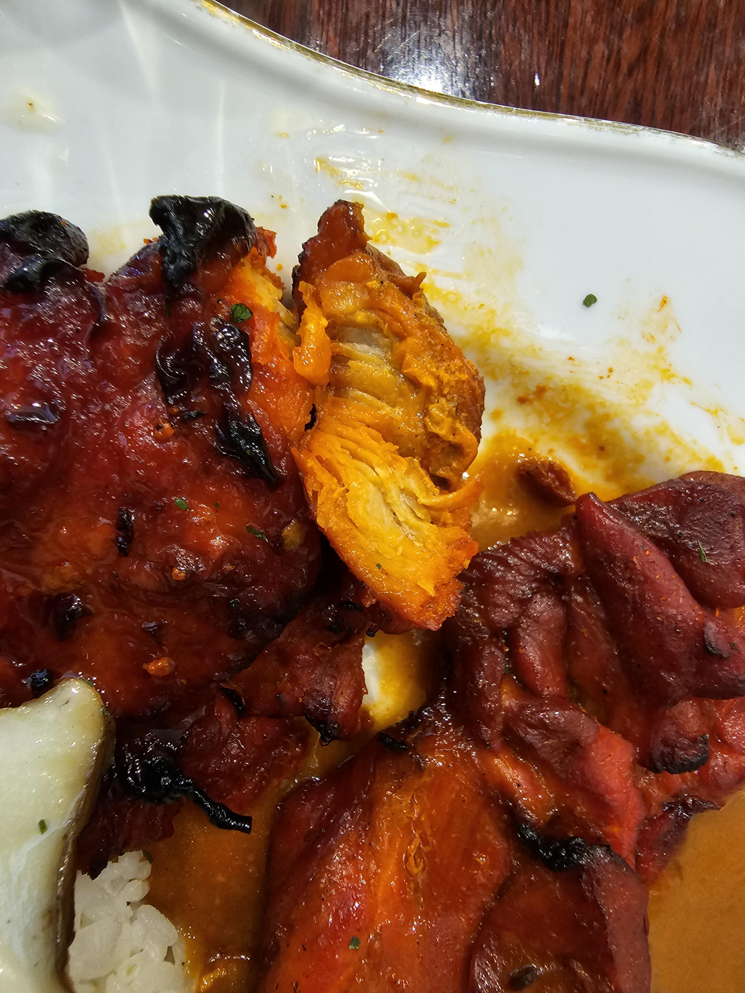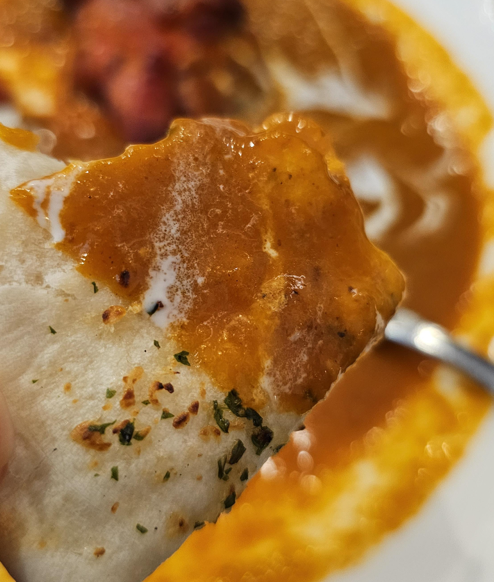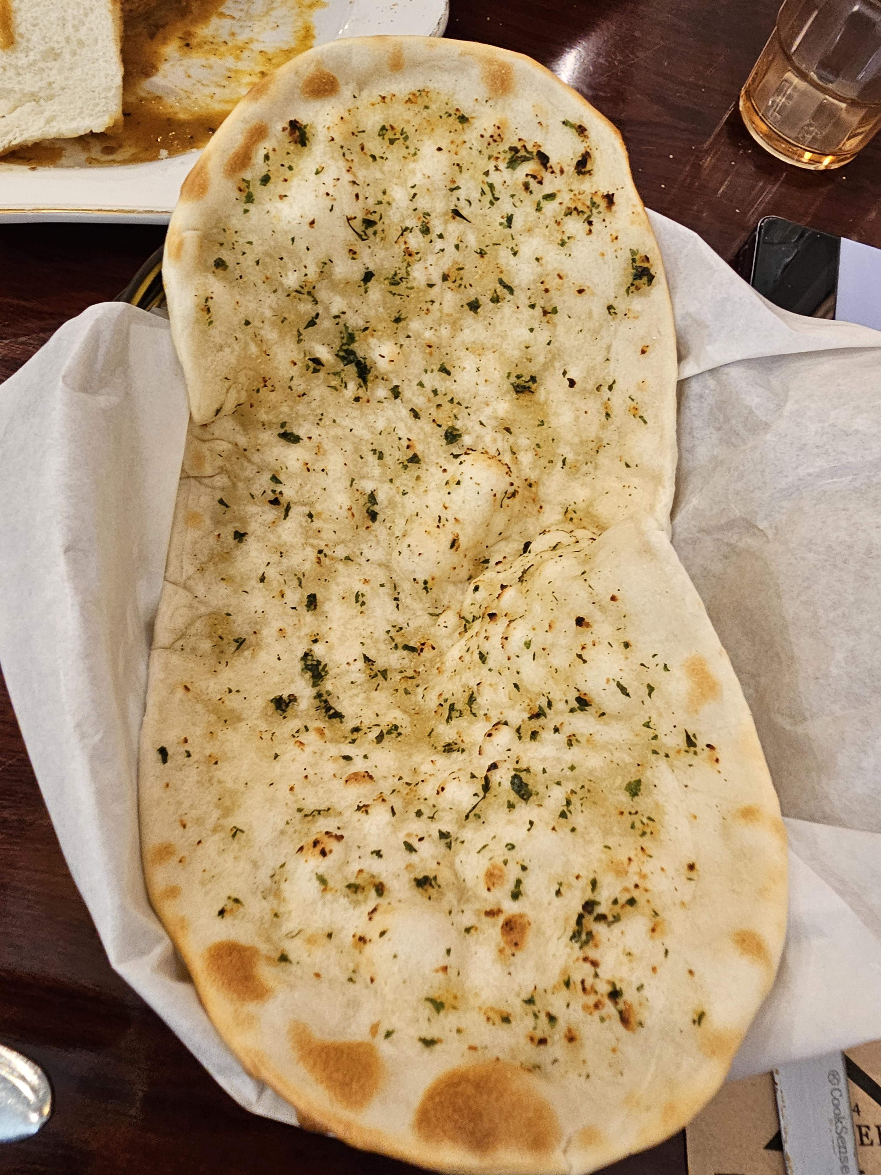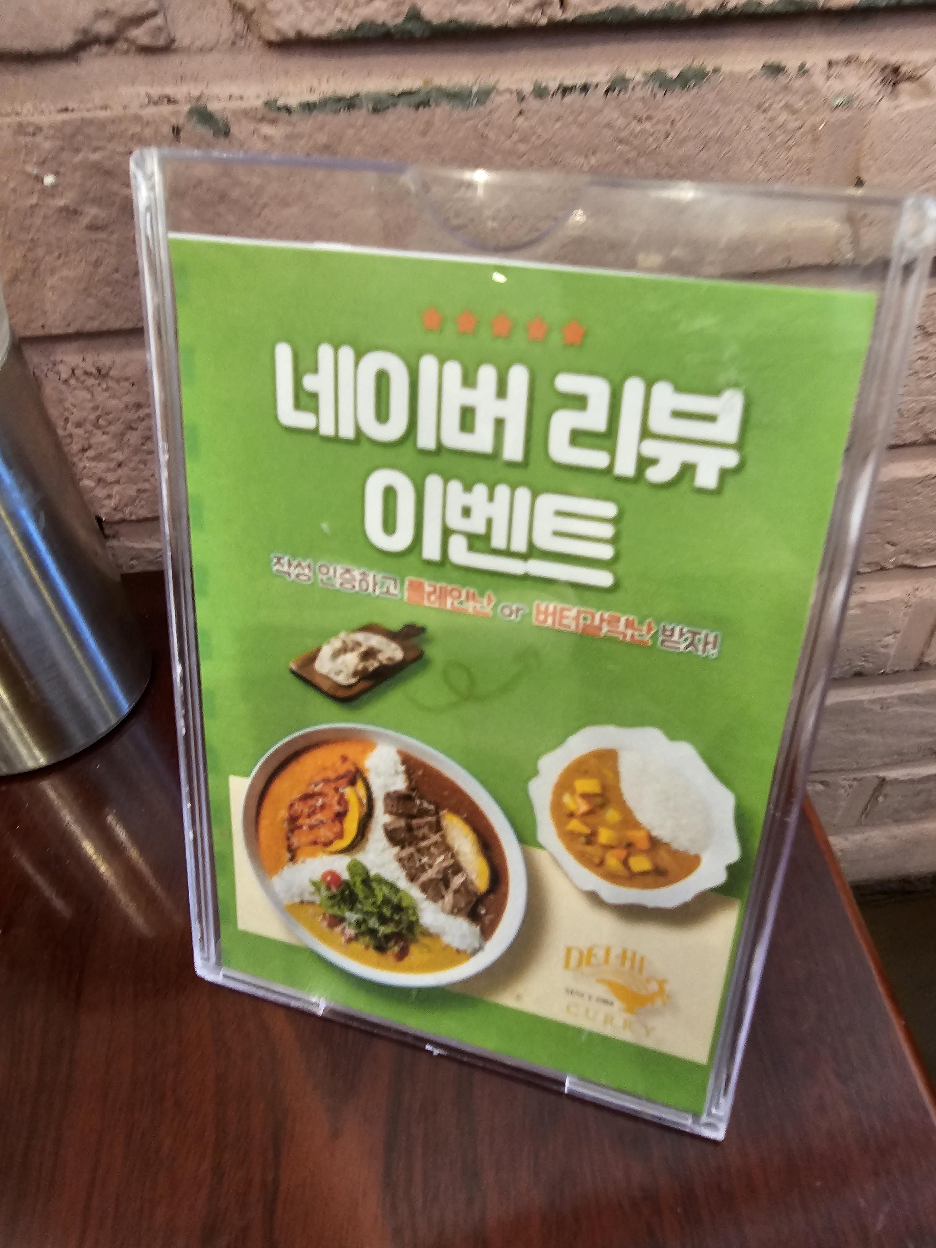 먹다가 테이블에 네이버리뷰를 작성하면 플레인난이나 버터갈릭난 중에 한 개를 서비스를 준다고 해서 후다닥 리뷰를 작성하고 난을 한개 받아서 같이 먹었습니다. 플레인난보다 버터갈릭난이 좀 더 비싸길래 버터갈릭난으로 받았는데 쫄깃하면서도 약간 버터향도 나는 게 맛있었습니다. 카레랑 찍어먹어도 좋았지만 난만 그냥 먹어도 고소하고 쫄깃해서 맛있게 먹었습니다.