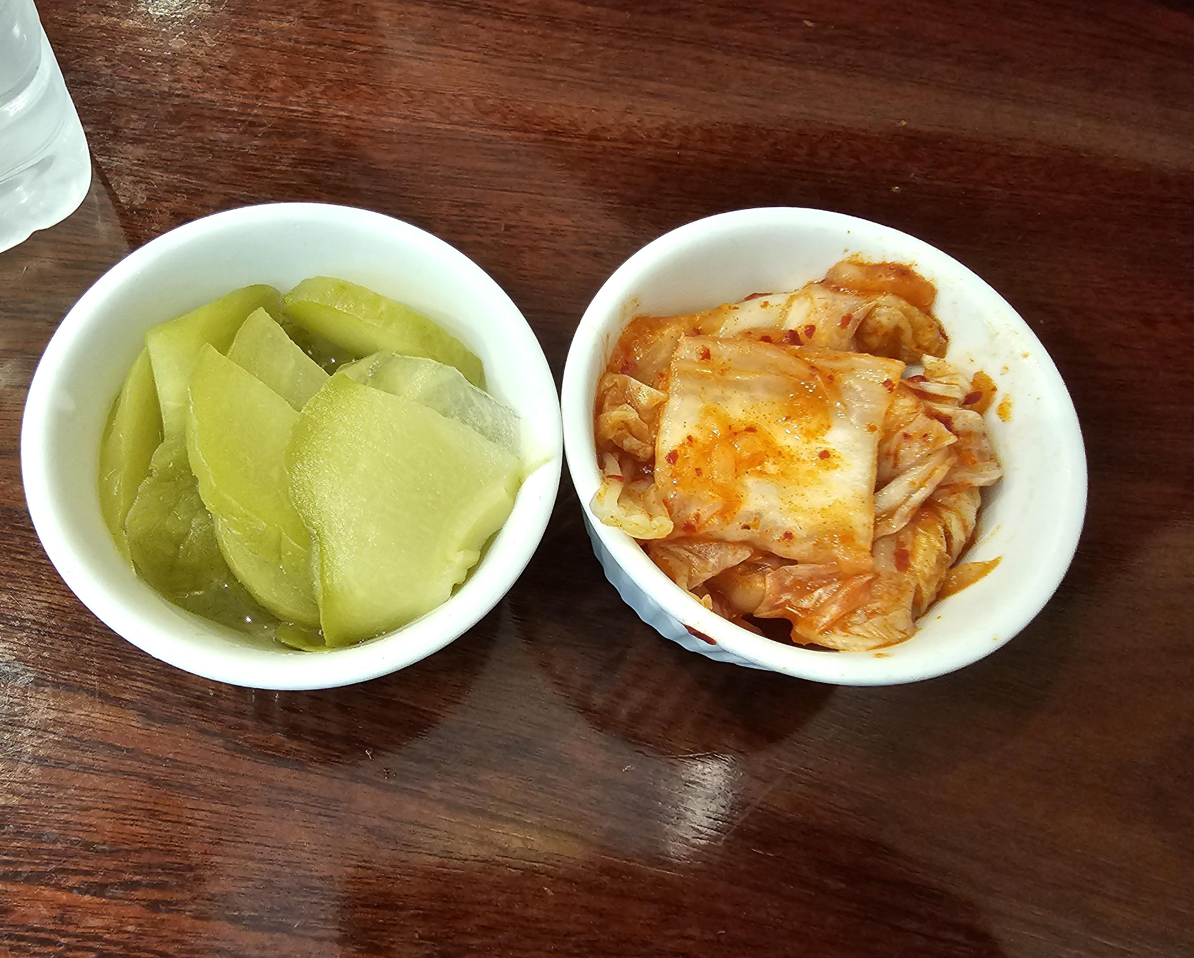 반찬으로는 피클과 배추김치가 나옵니다. 맛은 평범한 자주 먹어본 식당 김치 맛이었습니다.