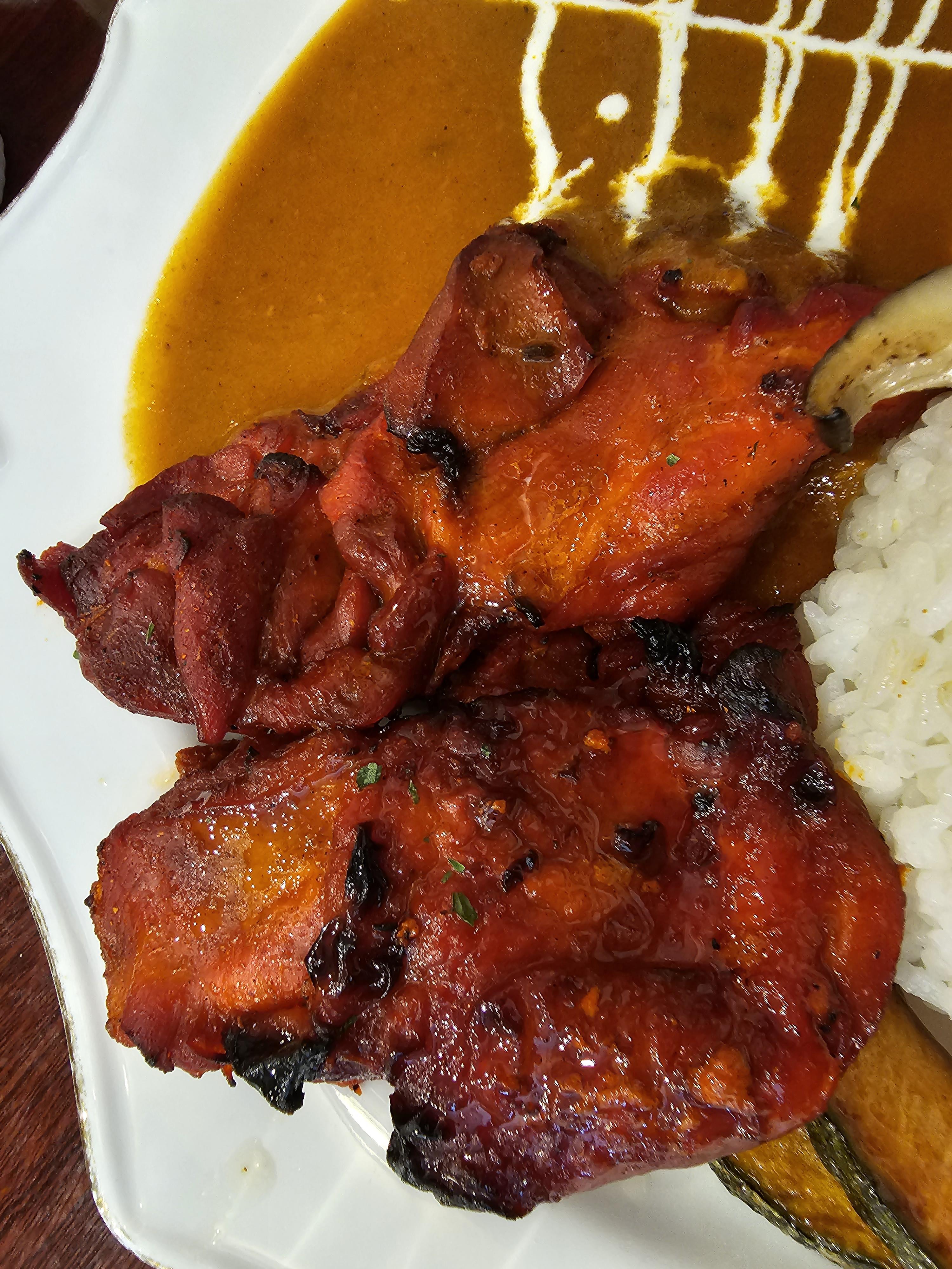 치킨 스테이크 마크니 카레는 치킨 토핑으로 스테이크 2조각 단호박 2조각, 새송이버섯 2조각이 나오는데, 새송이 버섯이 요리가 바로 나왔을 때 뜨거울 때 먹으니 쫄깃하고 맛있었습니다. 단호박은 그냥 평범한 호박맛이었고, 치킨은 일부분은 부드러운데 다릿살인 것 같은데도 일부분은 약간 퍽퍽한 느낌이 있었습니다. 좀 더 껍질이 바삭하게 구워졌으면 좋았을 것 같네요. 치킨스테이크는 약간 아쉬웠습니다. 닭고기는 카레랑 같이 먹기보다는 따로 닭고기만 먹는 게 개인적으론 더 맛있었습니다. 카레는 그냥 맛있었습니다. 밥하고 먹으니 딱 다 먹을 정도로 양도 맞게 나온 것 같네요.