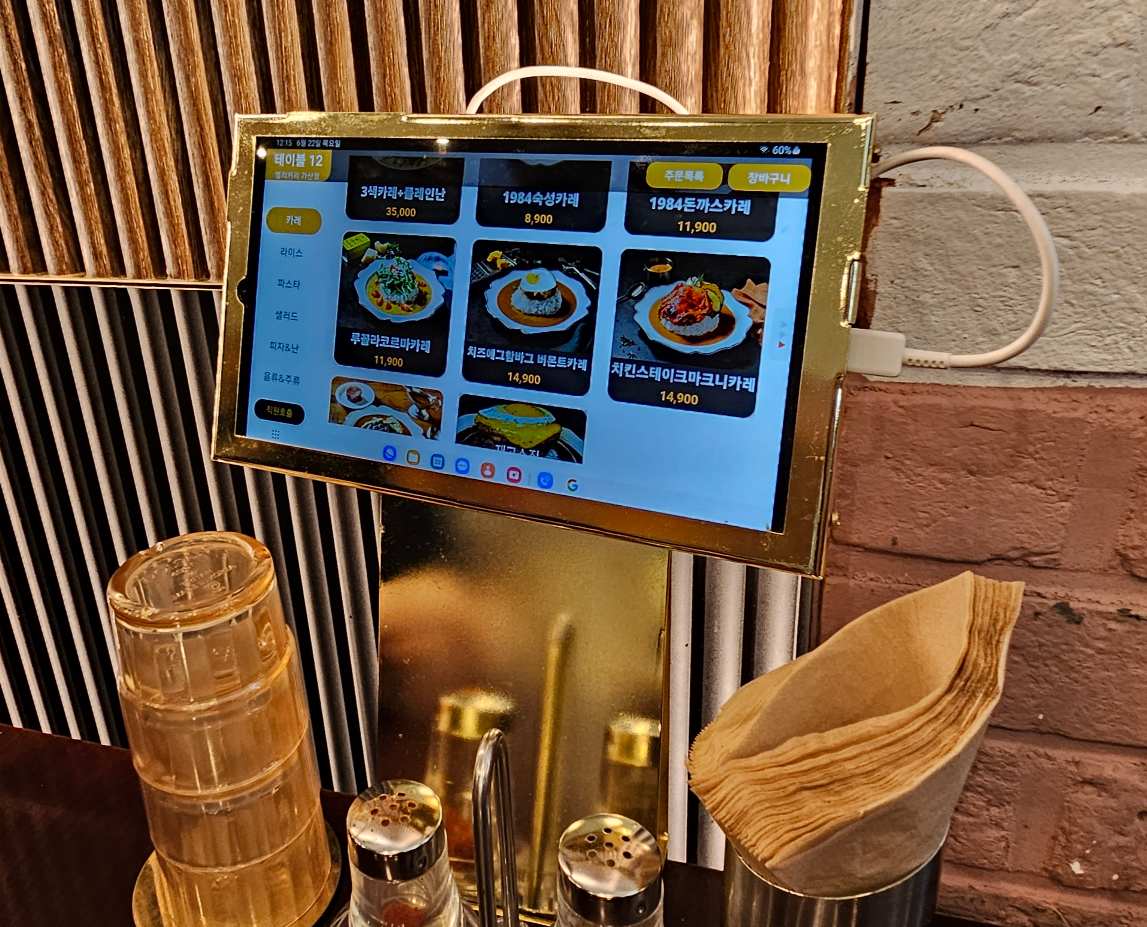 주문은 태블릿으로 하는 방식이었습니다. 저희는 카레빠네(14,900원)와 치킨스테이크마크니카레(14,900원)를 주문했습니다. 카레는 1회 리필이 가능하고 밥은 무한으로 리필이 가능하다고 하네요.