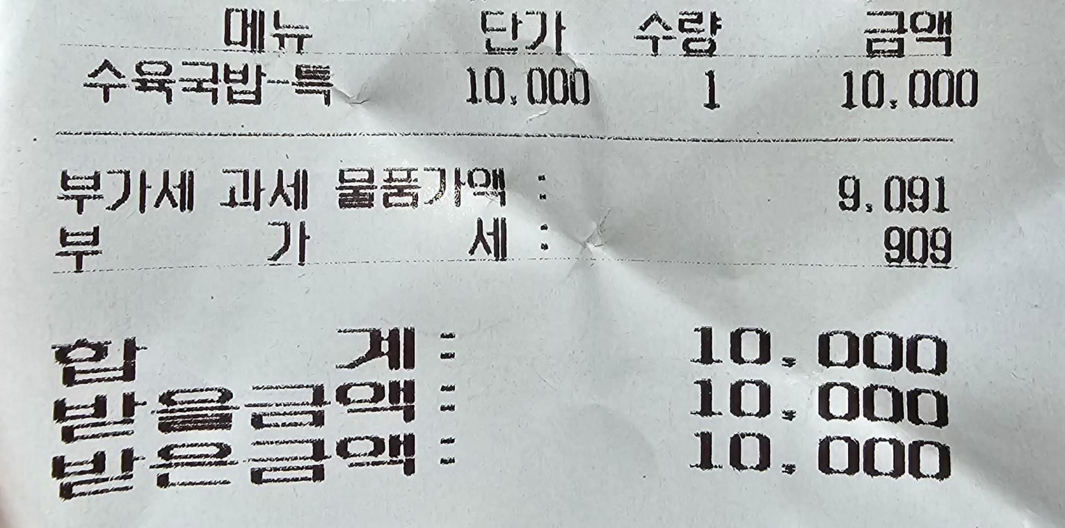 저는 수육국밥 특(10,000원)을 주문했습니다.