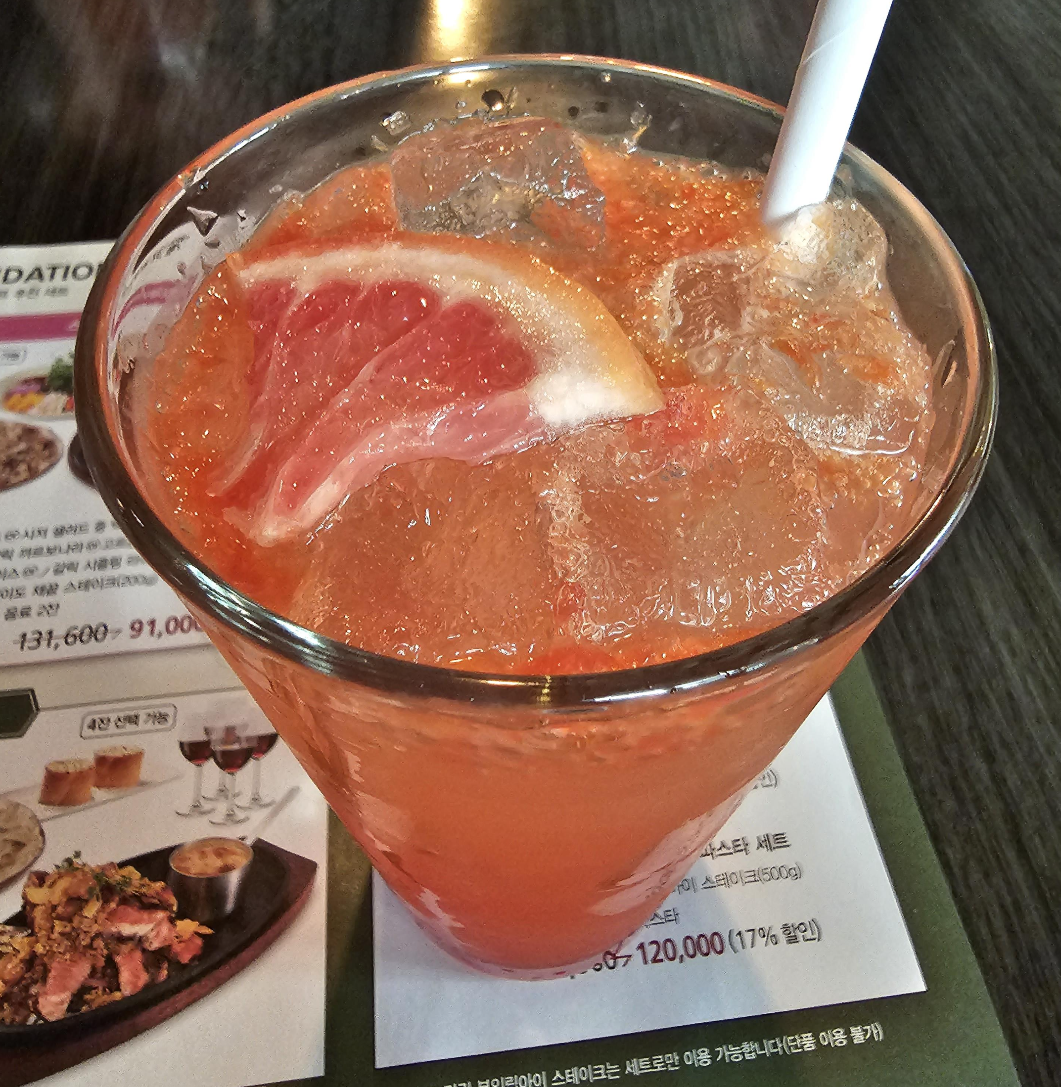 맨 처음으론 레모네이드, 자몽에이드가 나왔습니다. 둘 다 상큼하고 맛있었습니다. 맛 자체는 일반적으로 다른 식당에서 먹던 에이드와 별차이는 없었습니다.