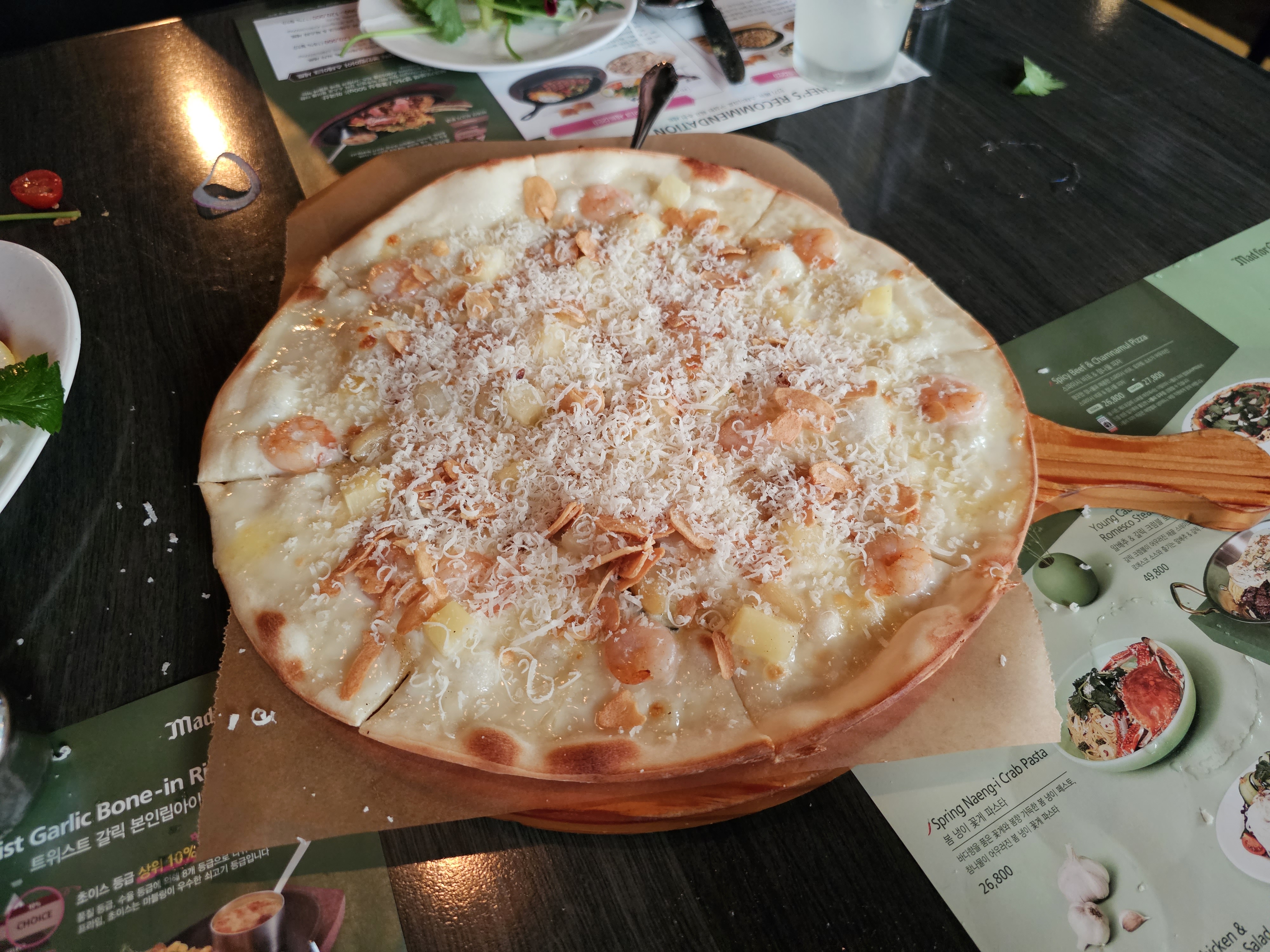 도우는 약간 또띠아 피자를 먹는 느낌도 있었지만 짭짤하고 고소해서 맛있게 먹었습니다.