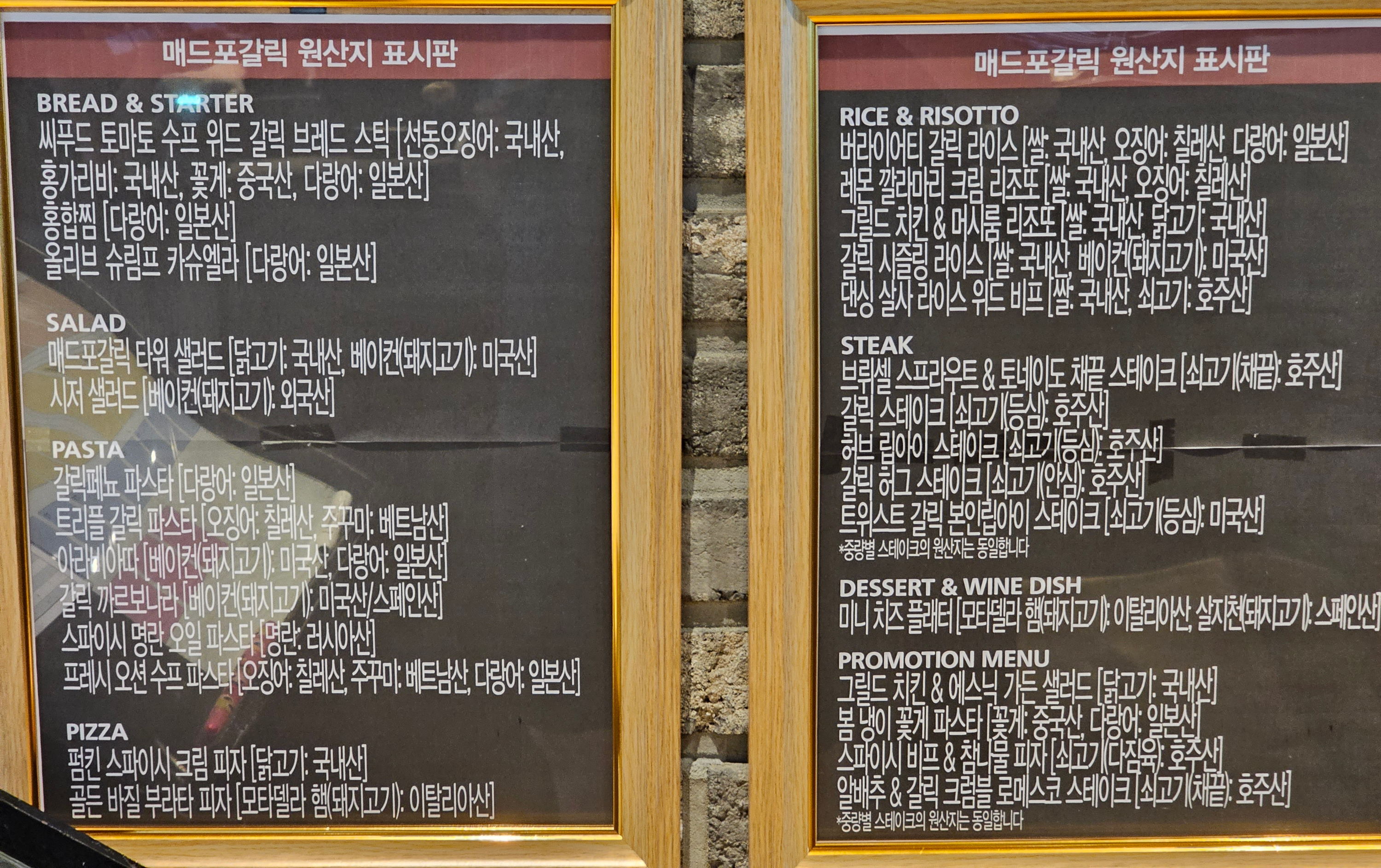 입구에는 원산지 표시판이 있었습니다. 여기저기 여러 나라 재료를 쓰고 있네요.