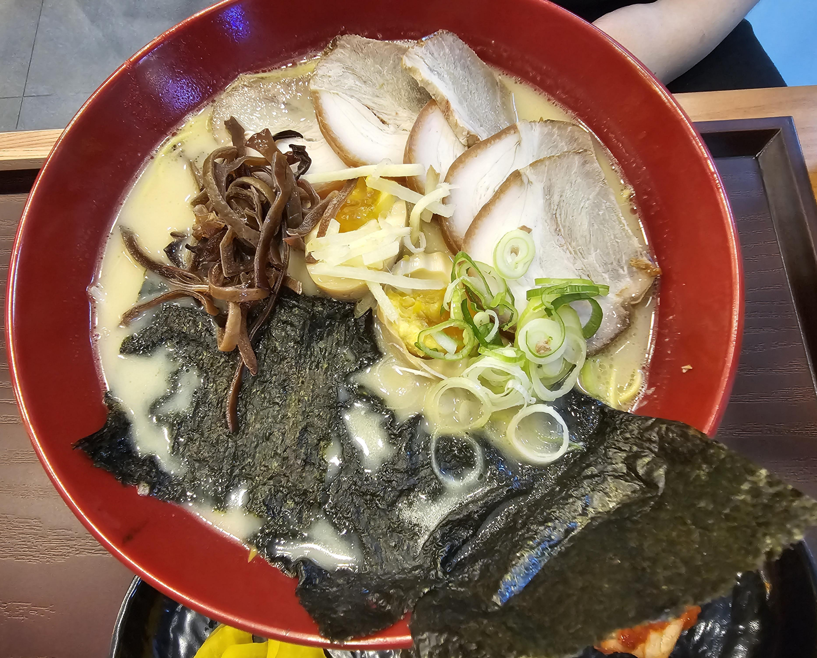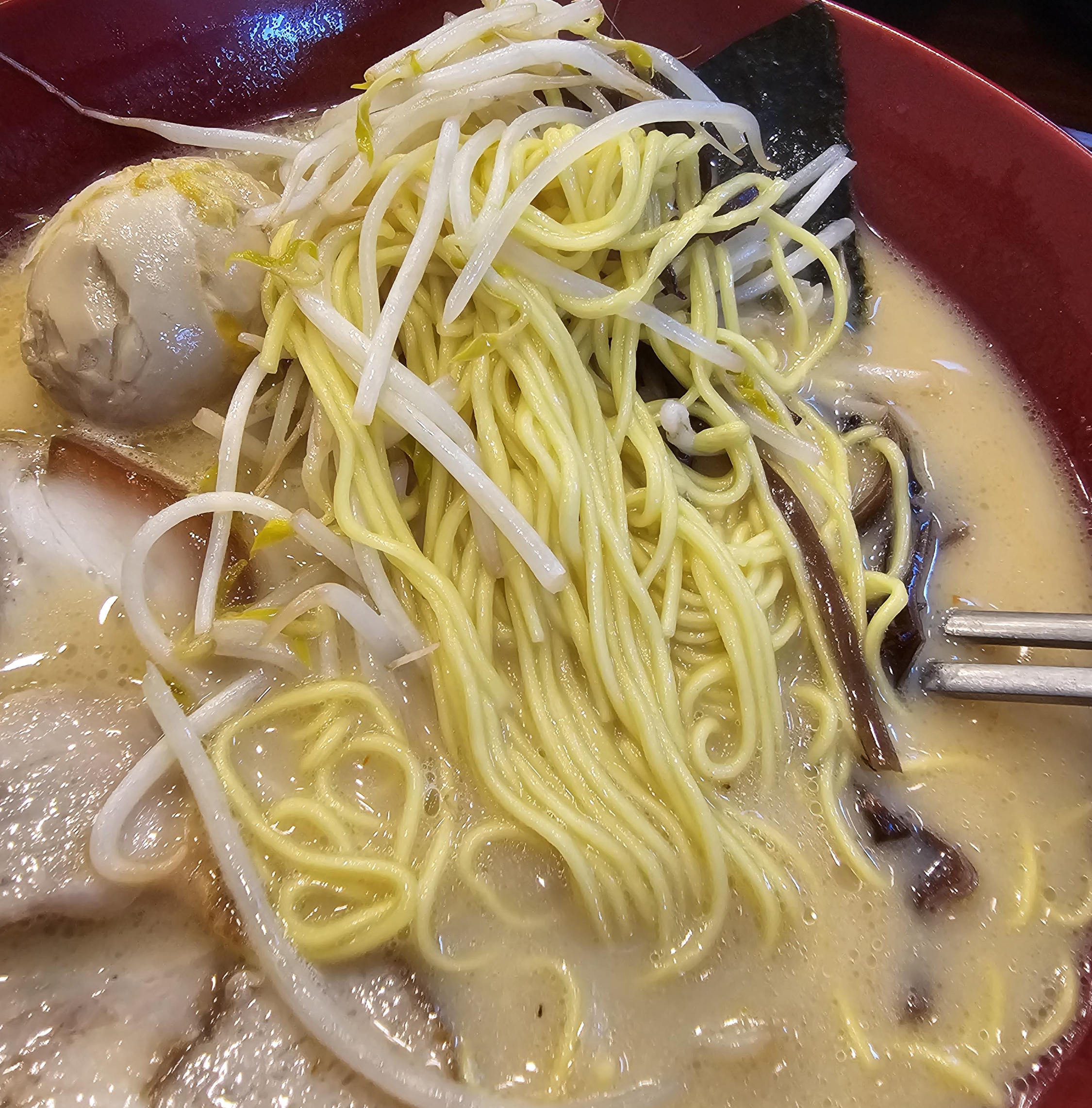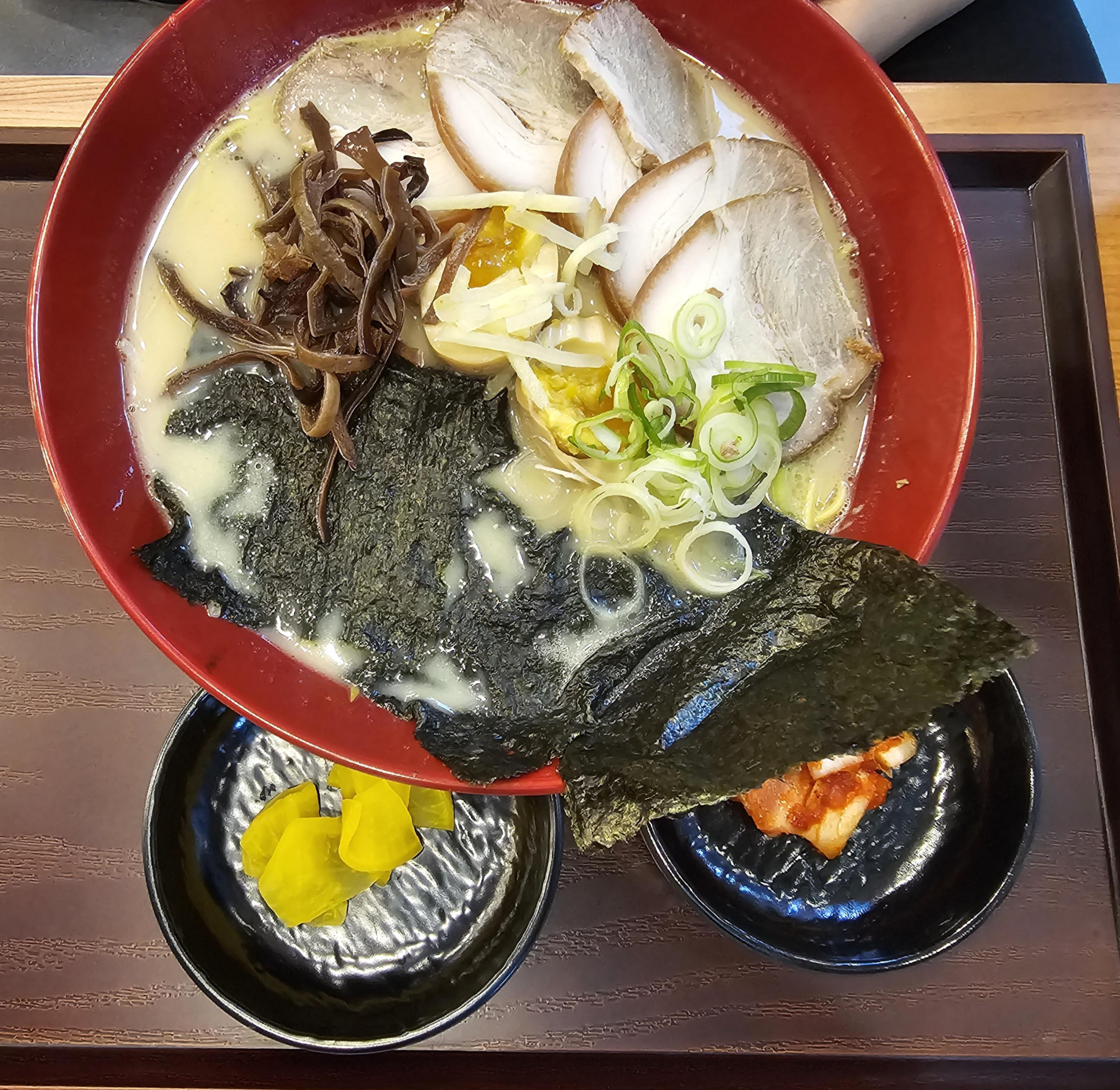 토핑이 많아 보이는게 점보 돈코츠라멘이고 적은 쪽이 면추가 한 돈코츠라멘입니다.