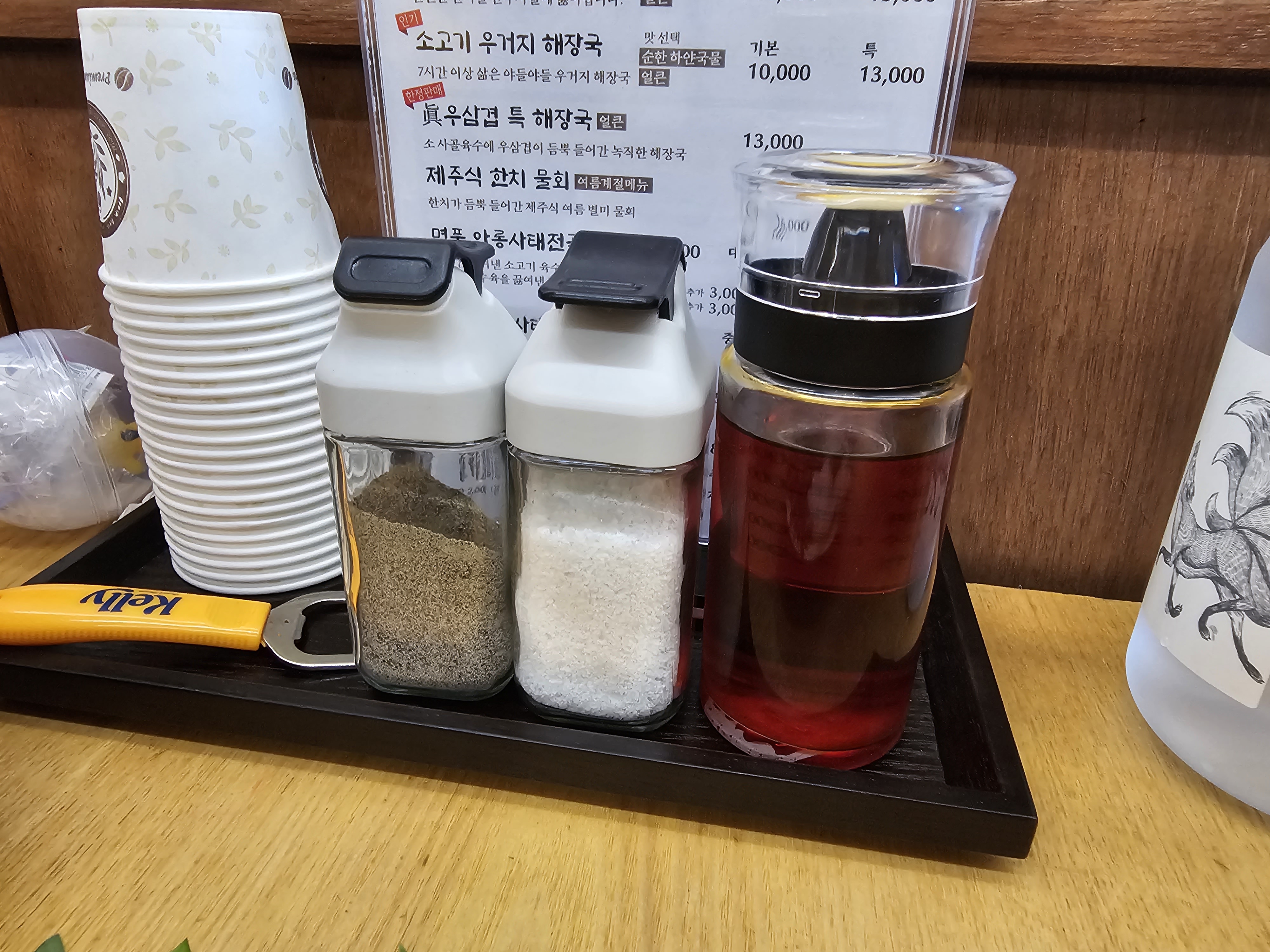 테이블에는 후추, 참기름등의 조미료도 있었는데 해장국용도는 아닌 것 같네요.
