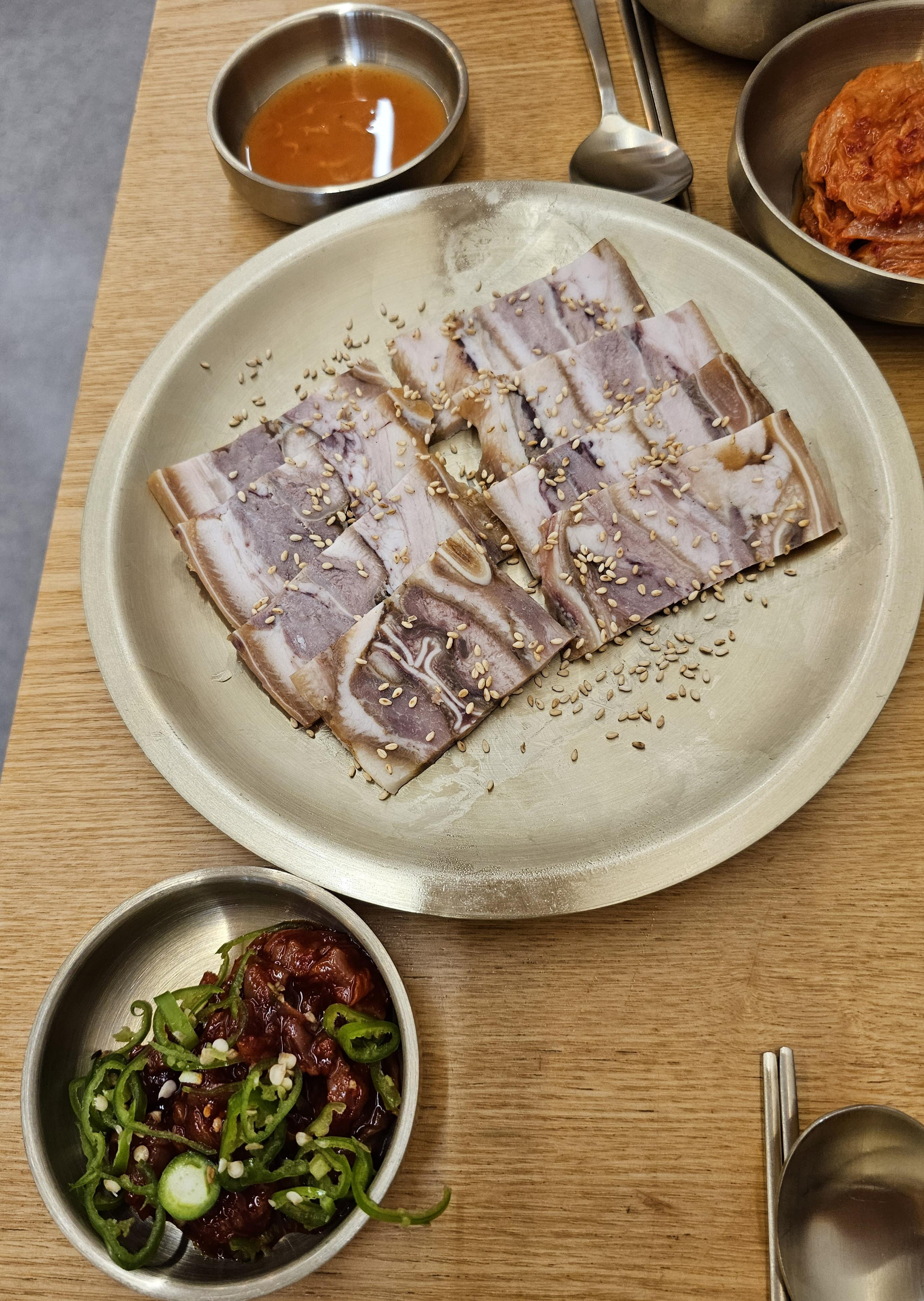 모슬포 편육 소는 창란젓과 새우젓이 같이 나왔습니다. 창난젓은 맛있었지만 편육과 잘 어울리는가? 하면 그냥 따로 밥에 먹는 게 더 맛있었던 것 같습니다. 편육은 그냥 평범한 머리 고기 맛이 습니다. 세트에 포함돼서 5,000원에 먹은 셈인데 이걸 세트가 아니고 따로 시켜 먹는다면 너무 가성비가 안 좋은 것 같네요. 소자가 단품으론 8,000원이었는데, 편육 개당 1,000원이라면... 좀 비싼 느낌이 있네요.