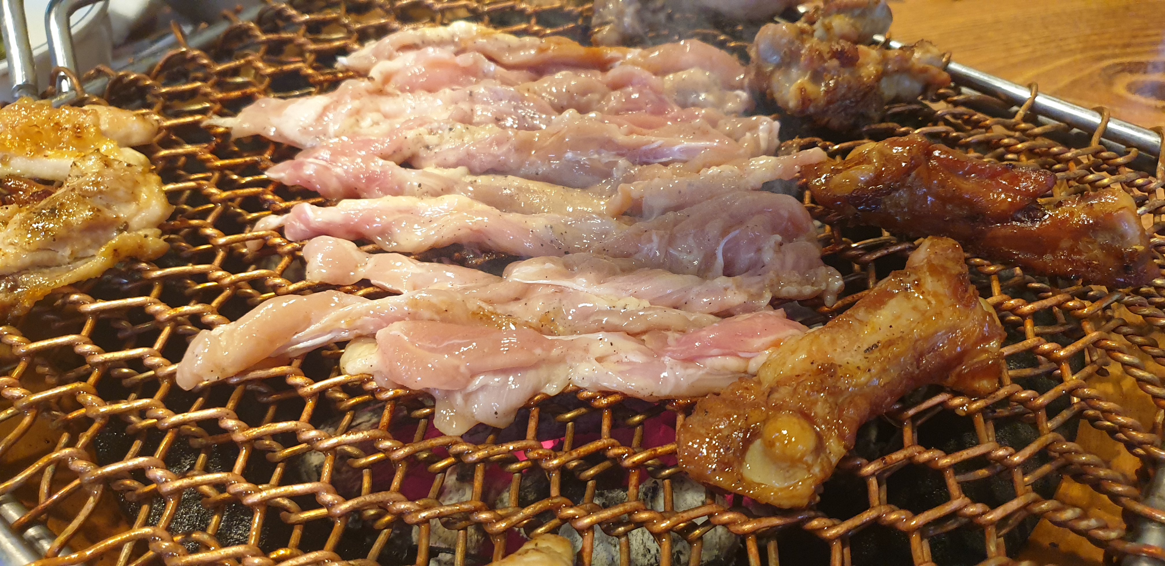 특이한 메뉴 꾀꼬리 살 평소에도 닭볶음탕이나 치킨의 목을 좋아해서 그런지 이 날 먹은 것 중에 저는 꾀꼬리 살이 제일 맛있었어요. 뭔가 염통 꼬치 느낌? 도 조금 나는 것 같고 그냥 소금만 찍어 먹으니 엄청 맛있었습니다.