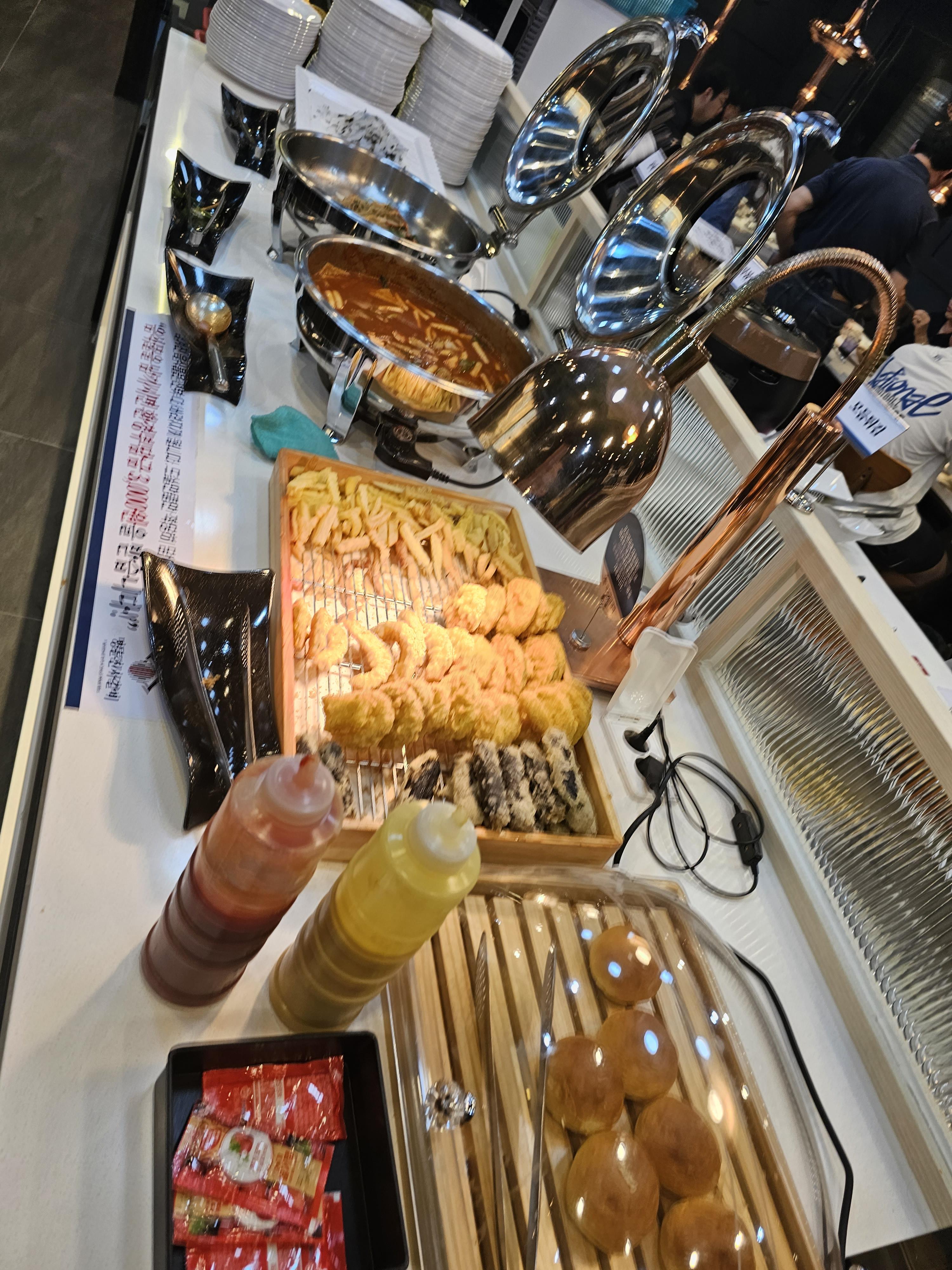 그 반대쪽에는 튀김과 모닝빵, 떡볶이, 잡채, 청포묵등의 음식이 있었는데 오랜만에 잡채를 먹으니 맛있었고, 청포묵도 엄청 오랜만에 먹어본 느낌이었습니다. 고기 외에도 먹을 게 있다는 게 좋았습니다.
