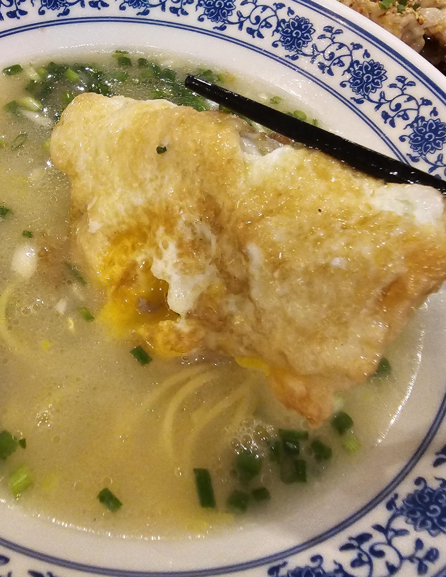 다만 옥수수면 특유의 성질인지 아닌지 모르겠는데 약간 면에 물기가 많이 남은 상태로 들어간 느낌? 물코팅이 된 느낌?이라고 느꼈습니다. 맛있지만 밀가루 면이면 더 맛있을 것 같은 느낌... 계란 프라이는 그냥 평범한 계란프라이를 국물에 담가 먹는 느낌이었습니다. 그래도 5,000원에 먹을 수 있다는 점이 잔치국수 정도의 포지션이라고 생각하면 나쁘지 않은 맛이었던 것 같습니다. 훈둔면 대신 만두 반접시와 이걸 먹는 것도 괜찮을 것 같네요.