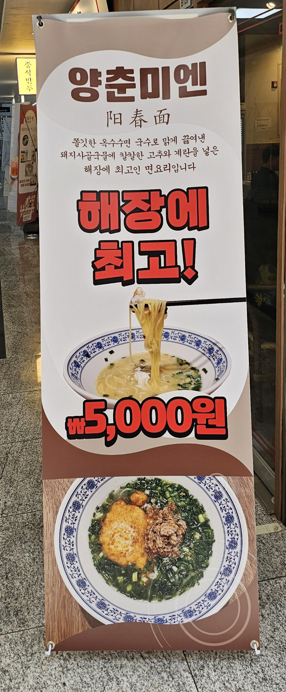 훈둔면 먹으려 간간히 왔던 식당인데 입간판에 못 보던 음식인 양춘미엔 이라는 면요리를 5,000원에 판다고 하기에 궁금해서 가봤습니다.