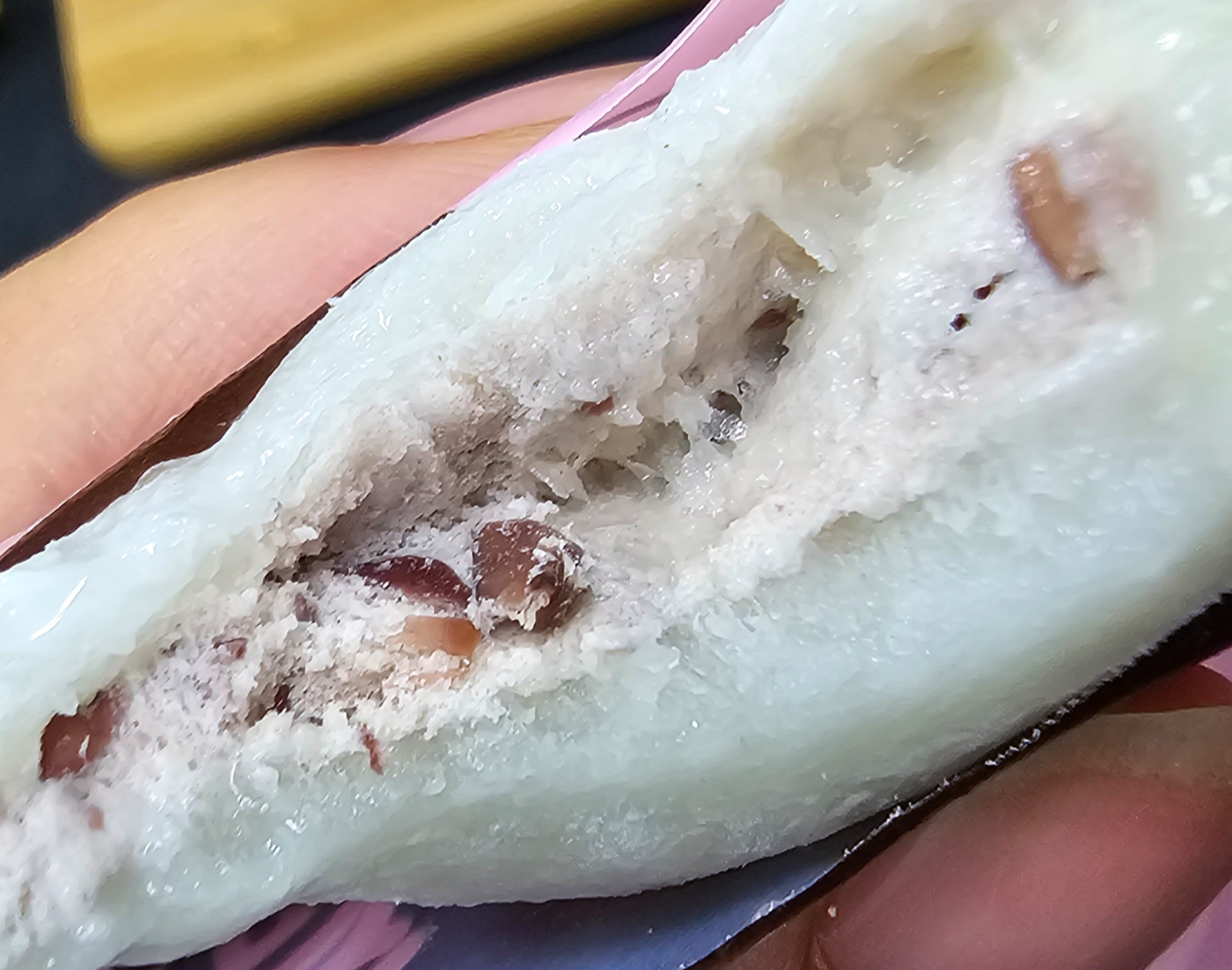 아이스와앙모찌 팥빙수는 겉은 찹쌀떡 같은 디자인에 약간 눌린 느낌이었습니다. 겉에는 밀가루가 붙어있고, 반으로 갈라보니 안에는 팥이 들어간 아이스크림과 가운데는 떡이 들어있었습니다. 꽤 팥빙수 느낌도 나고, 옛날에 먹던 찰떡 아이스 느낌도 나서 맛있게 먹었습니다.