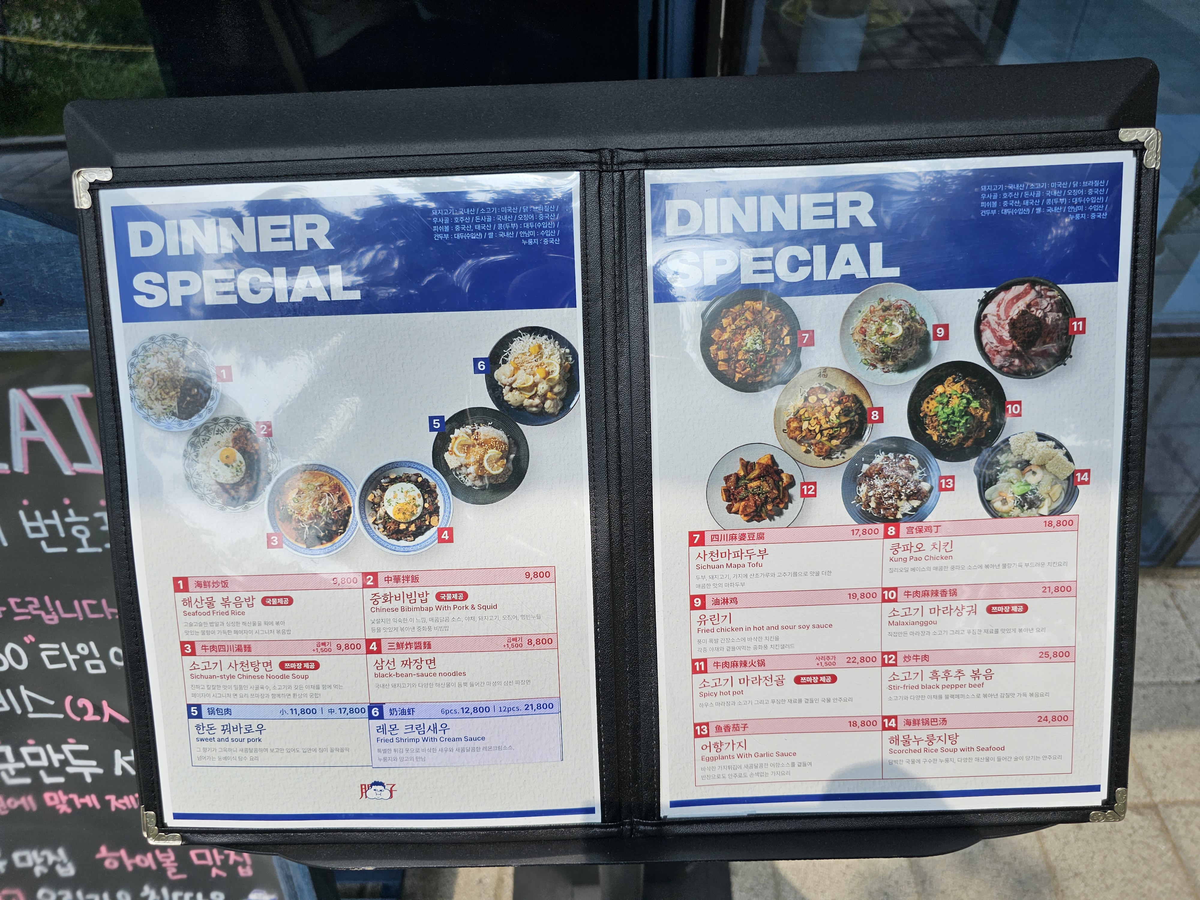 저녁에는 점심에 팔던 메뉴에 유린기, 마라샹궈, 누룽지탕등을 추가로 팔고 있는 것 같습니다.