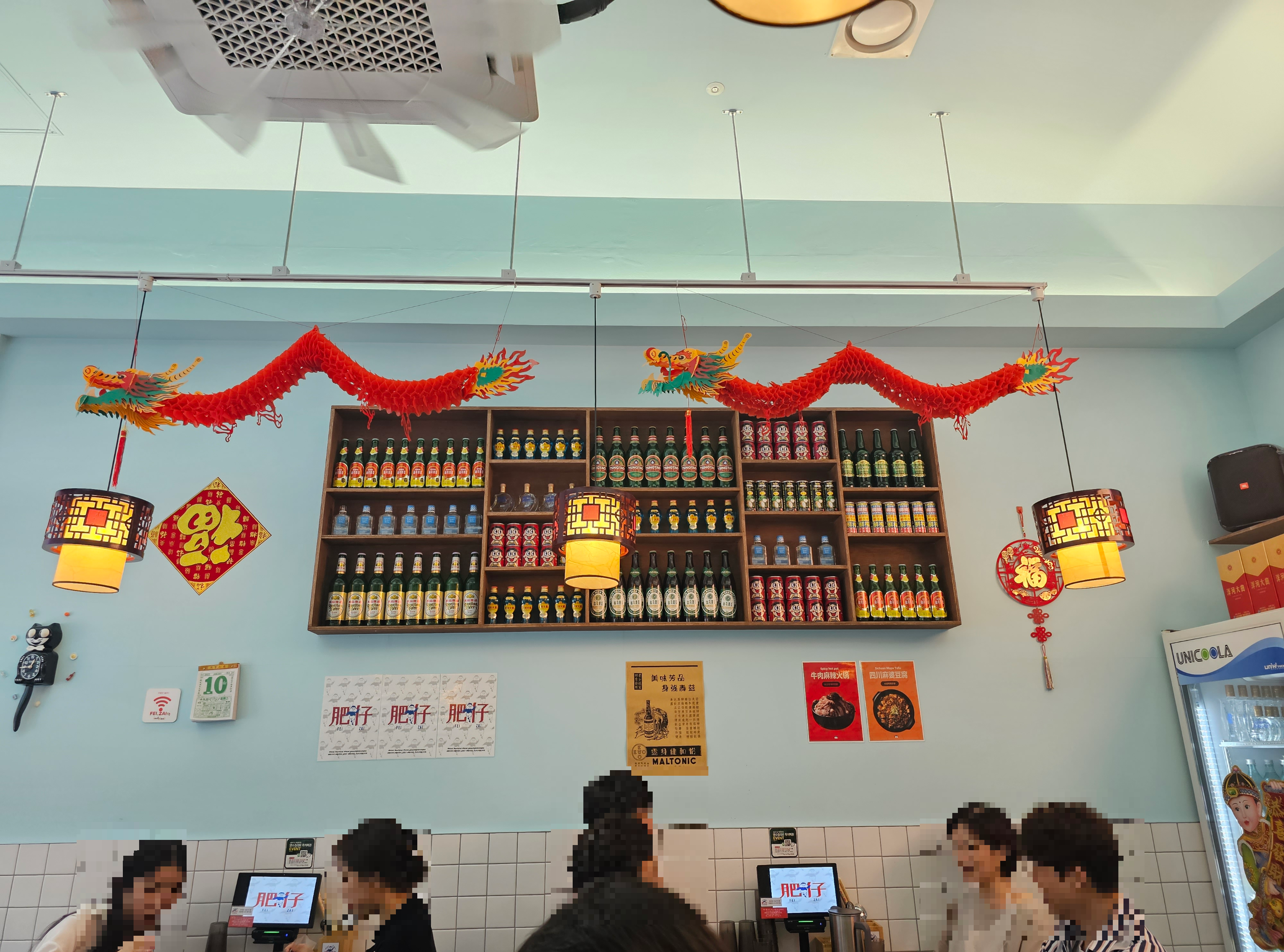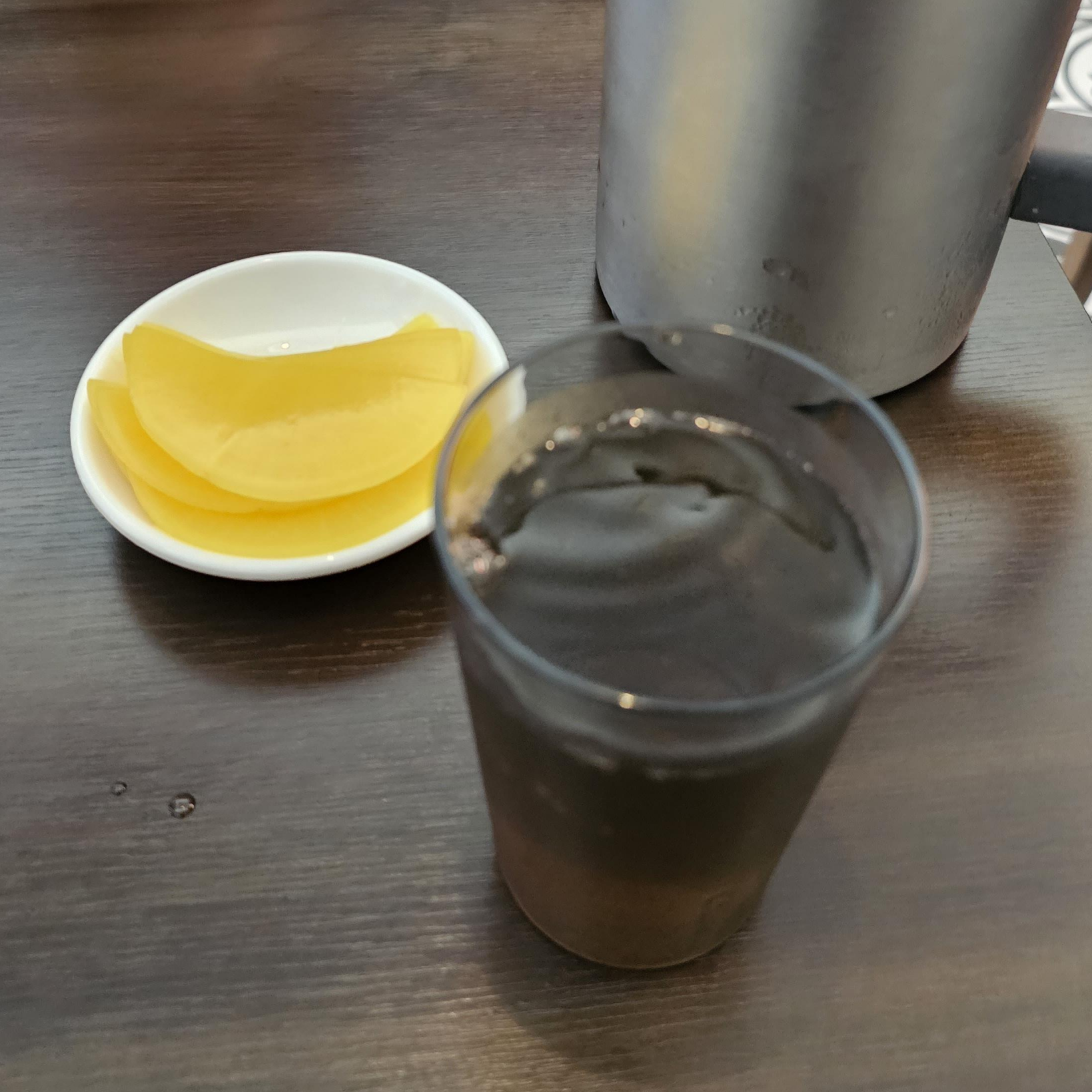 반찬으로는 단무지가 나오고 실내에는 중국 느낌 나게 붉은 등과 용, 중국 술 등으로 인테리어 되어있었습니다.