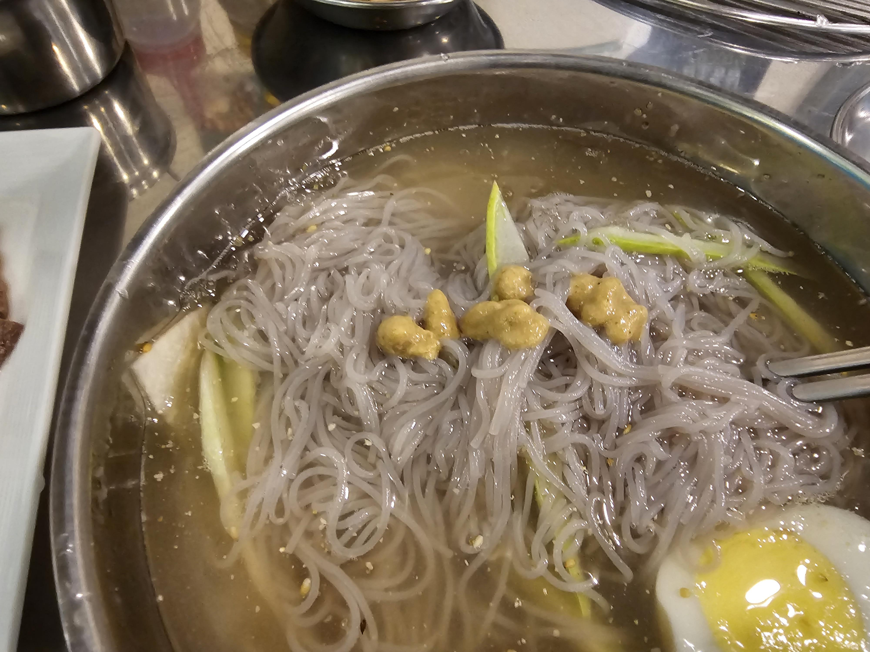 물냉면은 국물을 직접 만든다고 하는데 그래서 그런지 시판으로 파는 냉면국물처럼 시큼한 맛이 강하거나 하지 않아서 좋았습니다. 면은 기성품 같았는데, 그냥저냥 무난했습니다.