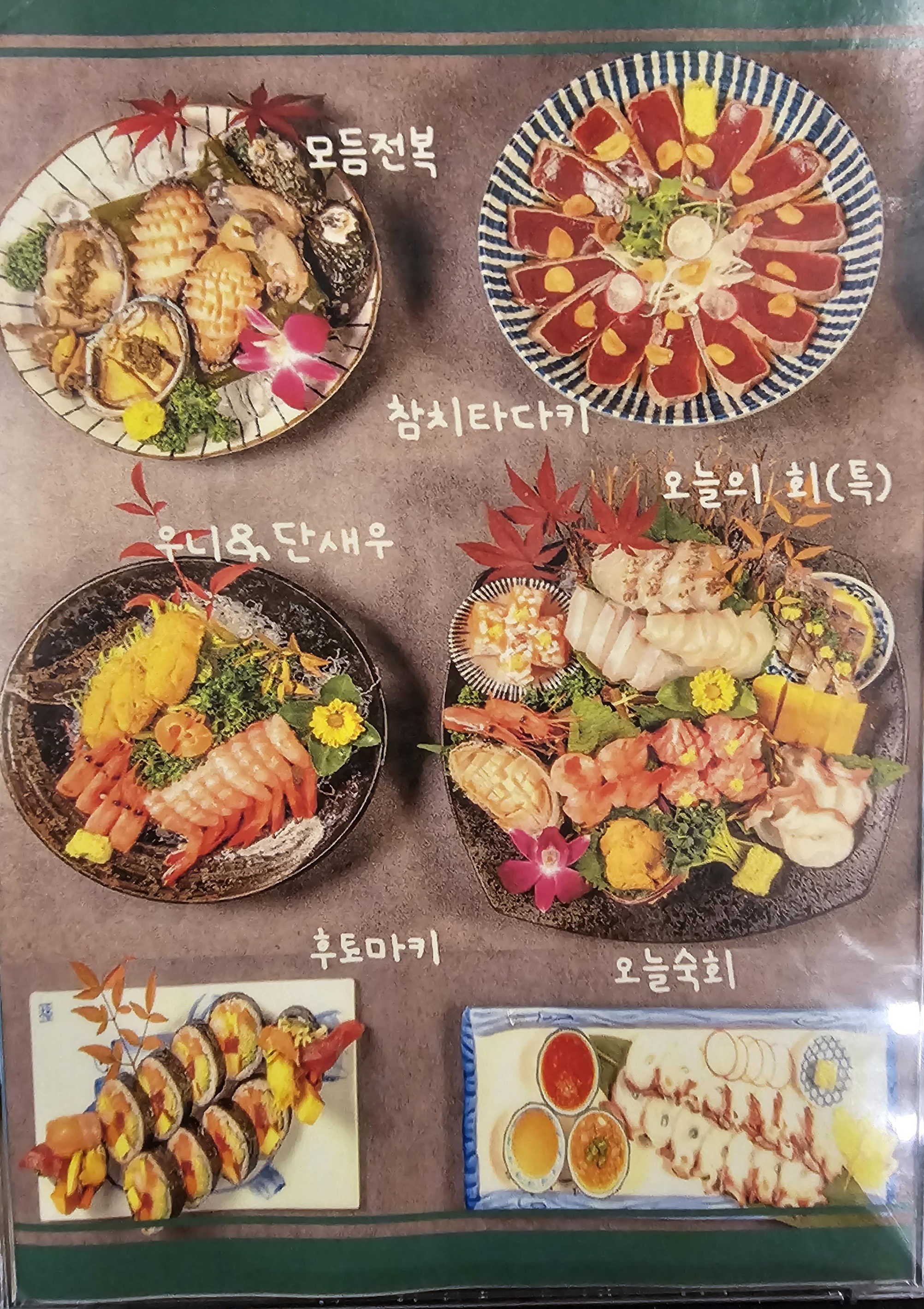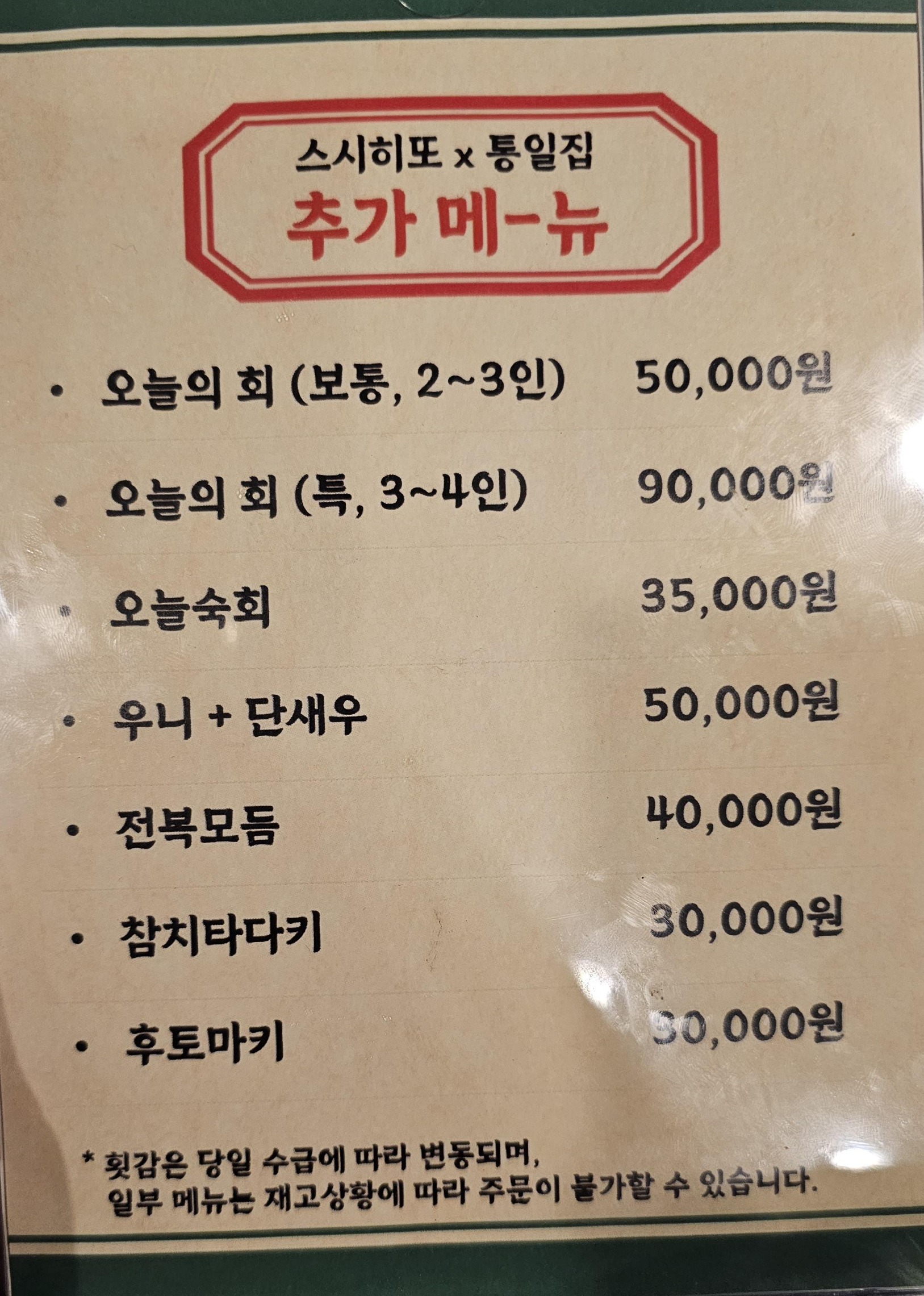 점심을 먹으려 온 저와는 관계 없지만 한우암소등심도 팔고, 특이한 점은 통일집 옆에 있는 초밥집인 스시히또와 협업을 하는 건지 회와 후토마키 같은 일식을 주문할 수 있다는 점이 신기했습니다.