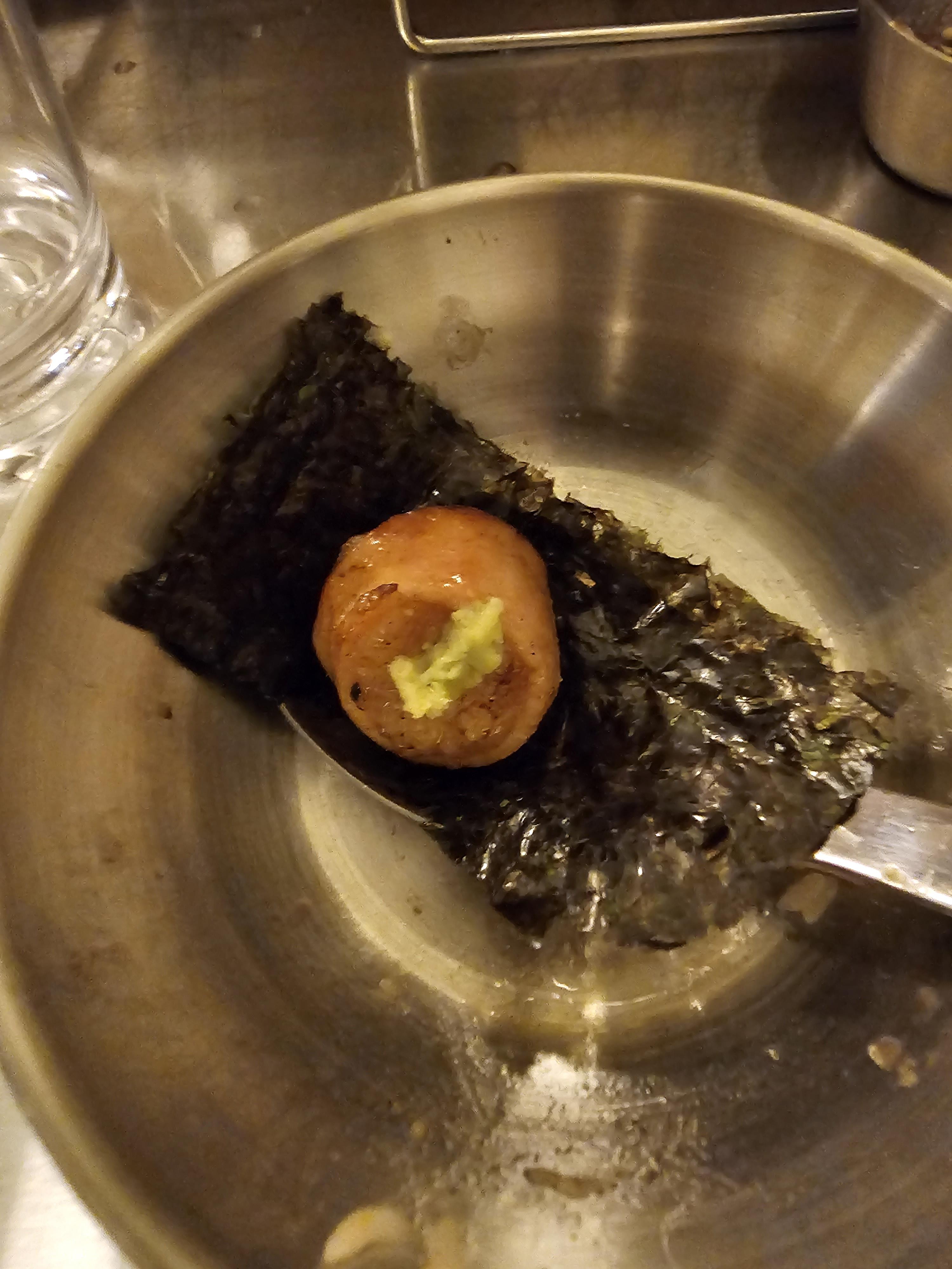 불판이 작아서 고기를 일반적인 고깃집처럼 한 번에 여러 개를 굽기 힘들어서 회식에는 약간 안 맞고 1인 혼술이나 2~4인 소규모 모임에 좋을 것 같다는 생각이 들었습니다. 고기는 그래도 각 테이블마다 구워서 먹으면 되는데 호르몬 같은 경우는 직원분이 구워 주시는데 테이블을 여러 개 쓰면 안쪽에선 굽기가 얘먜해서 밖 쪽 테이블에서 구워서 나눠 먹는 식으로 먹어서 단체 회식에는 약간 어울리지 않는 식당이었던 것 같습니다. 그래도 가산에서 야끼니꾸 느낌 나는 고깃집을 자주 본 적이 없어서 신기했고, 일반적인 회식 때 먹던 돼지고기, 소고기 느낌이 아니라 신선하고 좋았던 것 같네요.