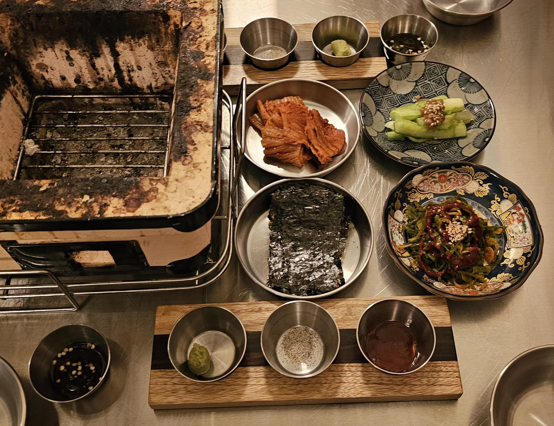 소고기는 전체적으로 맛있었는데, 한 번에 굽는 양이 적어서 한번 굽고 1~2조각씩 먹으면 불판이 비는 현상이 나오기도 했습니다. 뭔가 평소 먹던 불판이 아니라서 그런지 더 맛있게 느껴진 것 같기도 하네요. 그릴의 높이가 꽤 높아서 일반적인 고깃집보다 굽다 보니 팔이 약간 아픈 느낌도 있었습니다.