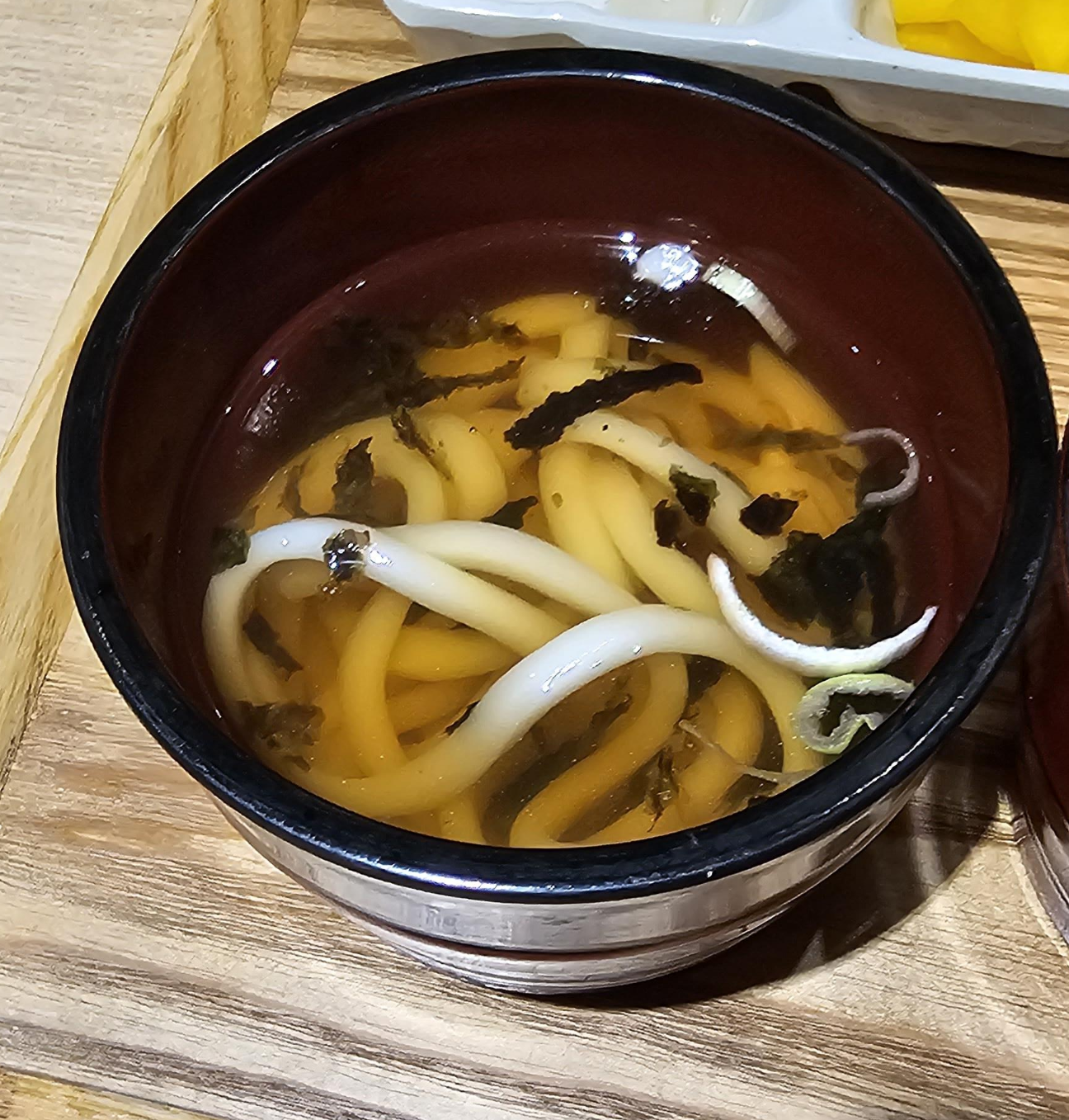 우동은 따끈하고 맛있었습니다. 냉모밀은 면이 약간 뿐 느낌도 있었지만 살얼음도 있고 시원해서 중간중간 먹기 좋았습니다. 아이스 아메리카노는 약간 보리차? 느낌도 나는 연한 맛이었지만 마무리로 좋았던 것 같네요. 구성이 좋아서 간간히 오는데 초밥집이였는데 여전히 사이드가 푸짐해서 좋았습니다.