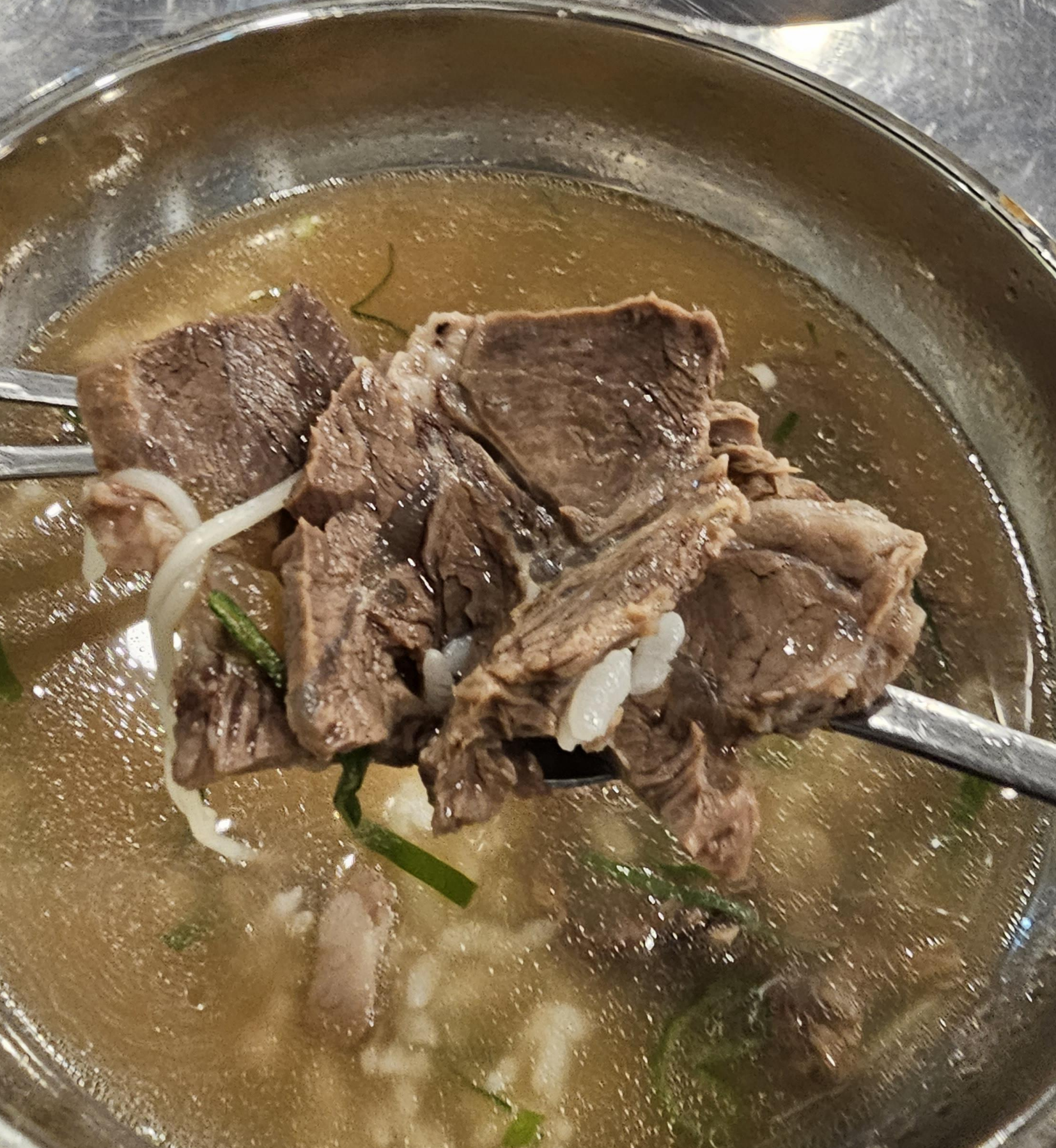 특이라 그런지 고기가 꽤 많이 들어가 있는데 밥이나 소면과 같이 먹어도 맛있고 양파 장아찌랑 같이 먹어도 맛있었습니다. 고기는 부드러워서 좋았고, 개인적으로 갈비탕 같은 직접 발라먹어야 하는 국밥류보다 훨씬 먹기 편하고 좋았습니다.