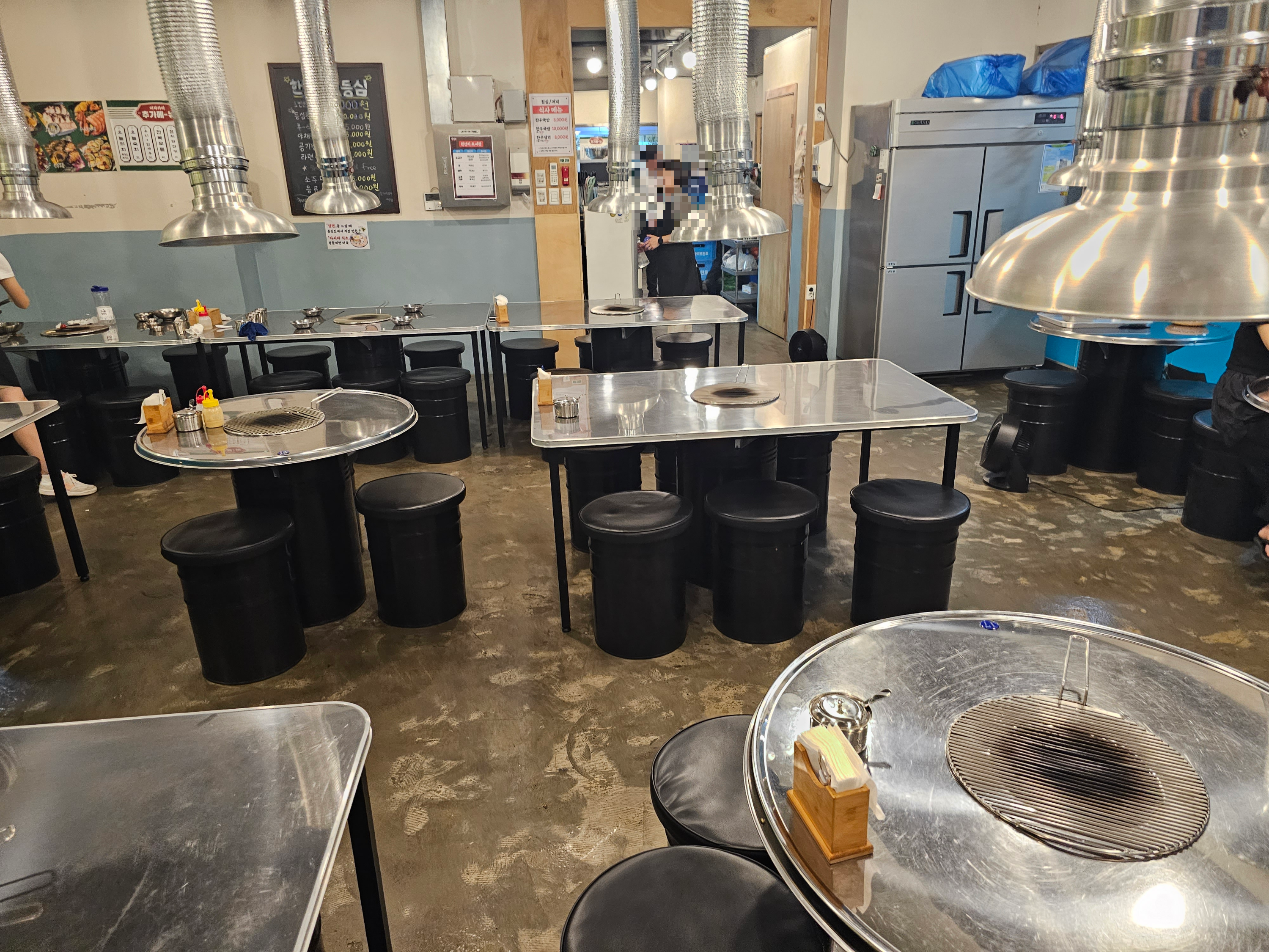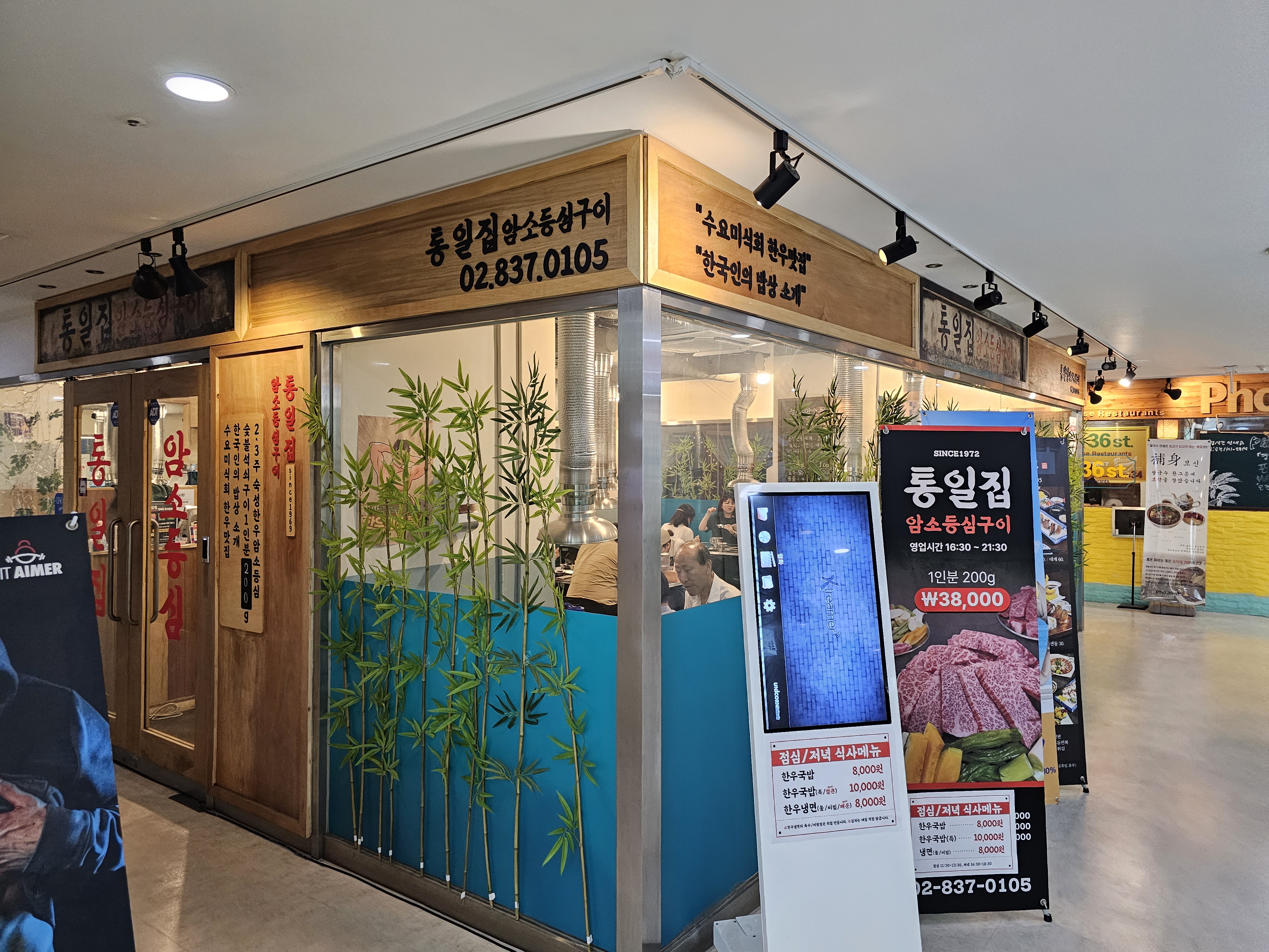 저번에 물냉면(통일집 - 한우냉면(물냉면))을 먹었던 가산디지털단지 삼성리더스타워 지하 1층에 있는 통일집에서 다시 한번 점심을 먹었습니다. 저번에도 느꼈지만 테이블 간 간격이 멀찍멀찍 떨어져 있어서 좋았습니다.