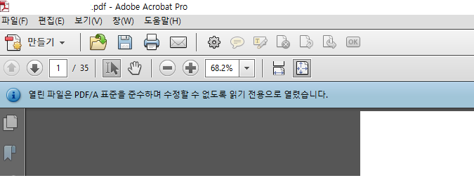 그리고 '열린 파일은 PDF/A 표준을 준수하며 수정할 수 없도록 읽기 전용으로 열렸습니다.' 라는 문구가 나오네요.