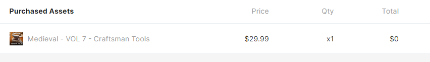 Medieval - VOL 7 - Craftsman Tools 에셋은 구매시 쿠폰번호(DEKOGON)를 입력하면 0원으로 가격이 변하면서 구매할 수 있습니다. 대장장이 도구 같은 게 퀄리티가 좋은 것 같네요.