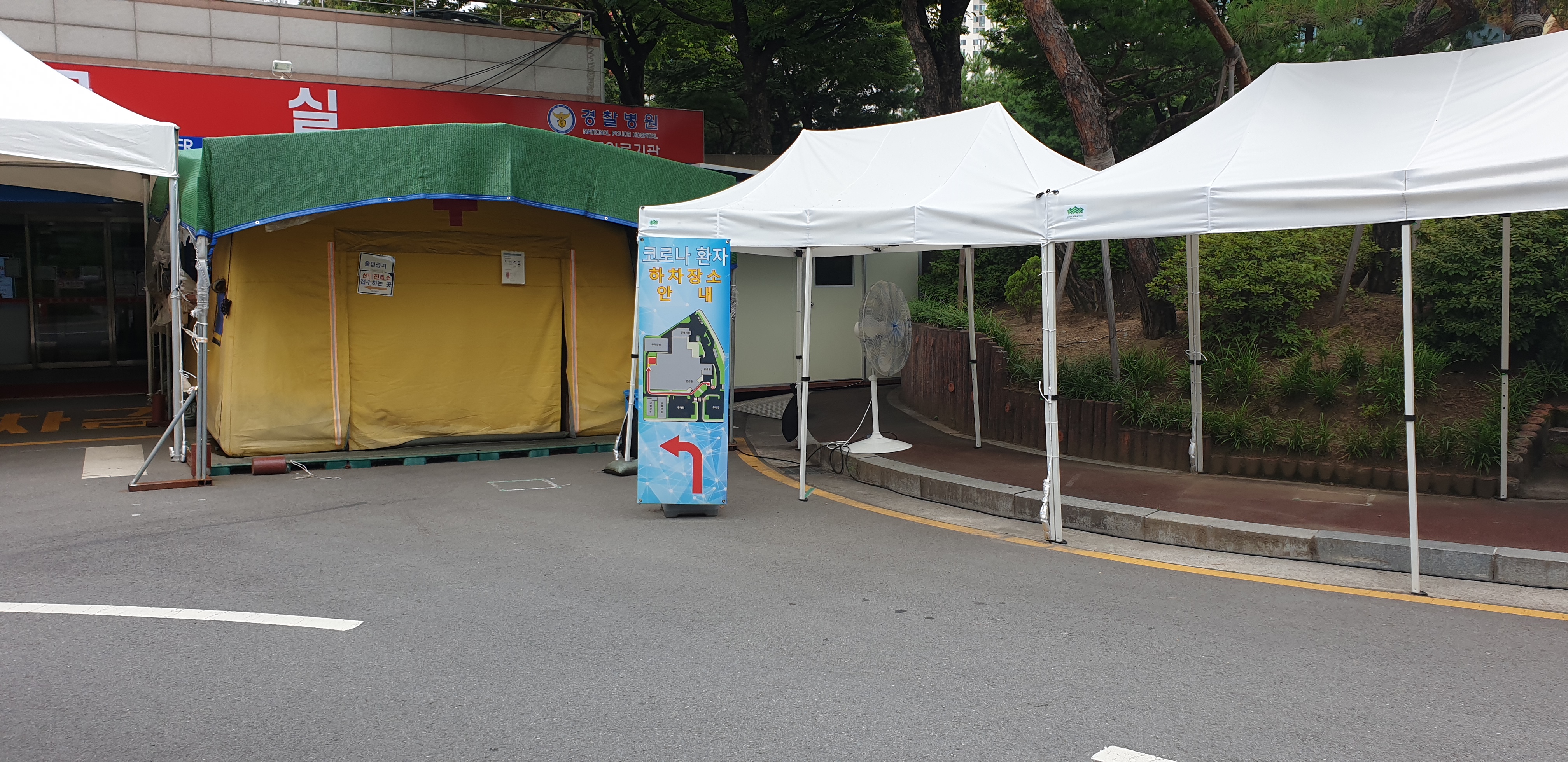 근방에 가장 가까운 곳이 경찰병원 선별진료소라길레 그냥 아침 9시 반에 아무 생각없이 걸어 갔습니다. 들어가자마자 보이더군요.