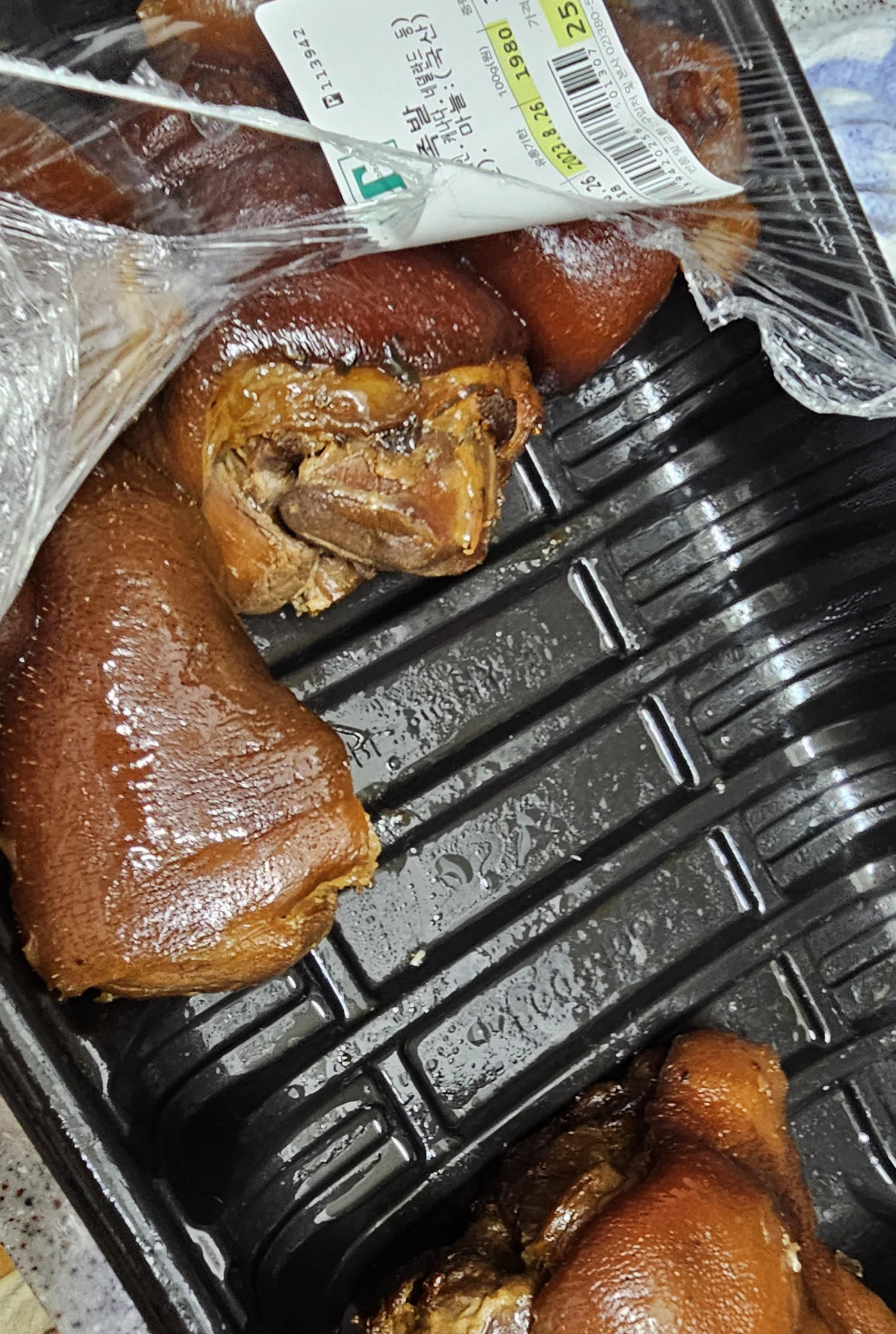 족발은 스페인, 캐나다, 네덜란드 등 여러 나라에서 온 돼지발로 만들어져있나 봅니다. 족발양은 꽤 많아서 절반정도만 꺼내서 썰어먹고 나머진 다른 날 먹었습니다. 약간 털이 보이는 부분도 있었지만 전체적으론 외관은 무난한 족발이었습니다.