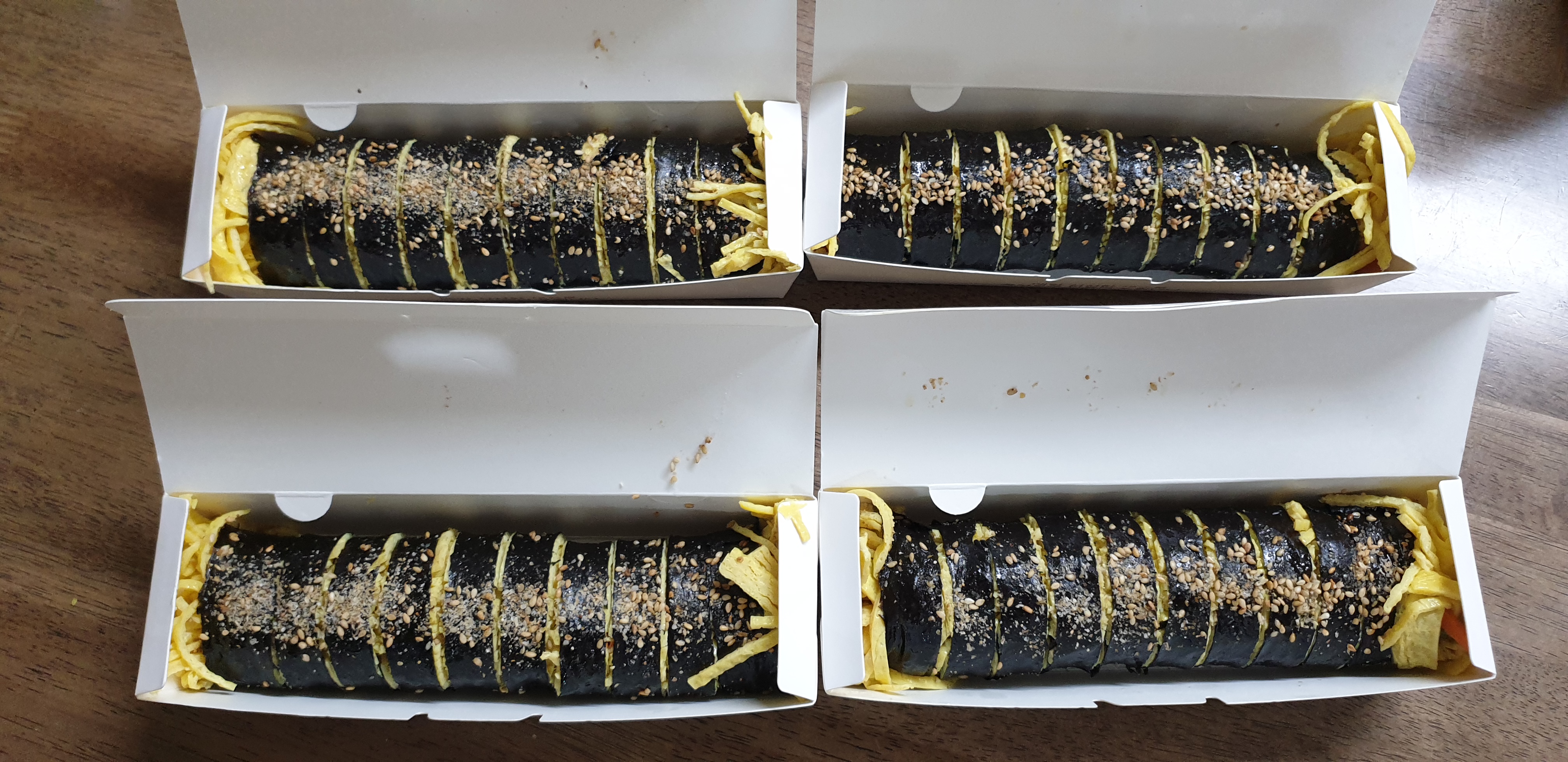 상자는 깔끔하고 무슨 김밥이 들어있는지 체크가 되어있습니다.