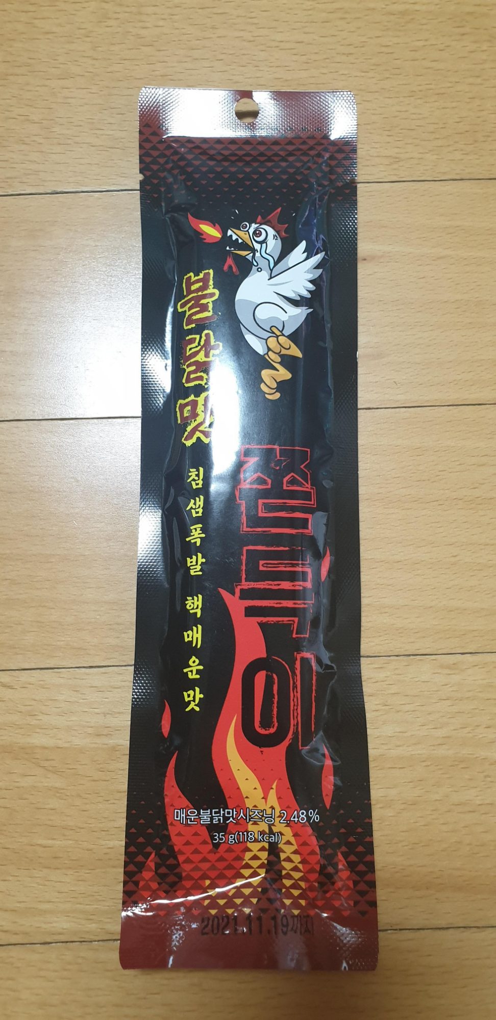 포장은 역시나 불닭맛이라는 이름 따라서 불꽃과 닭이 있네요. 핵 매운맛이라니... 얼마나 매운 쫀드기가 길레...라는 생각을 했으나... 먹어보니 별로 안 맵더군요.