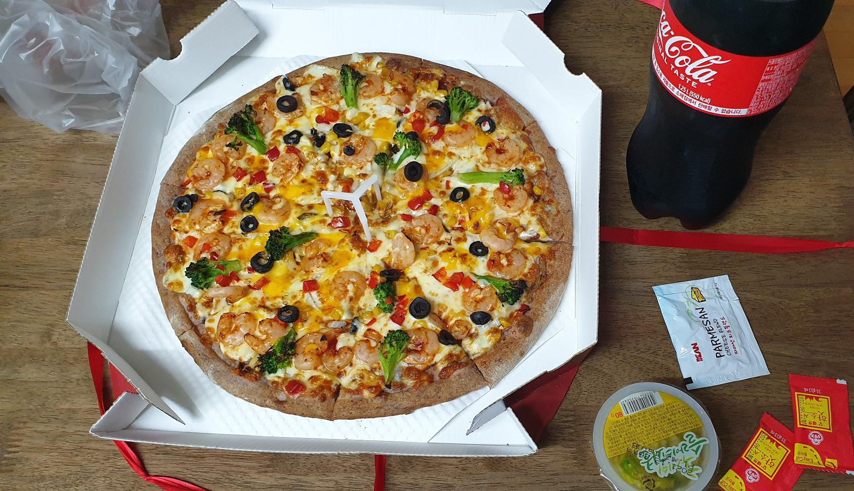 저는 보통 피자는 직접 포장해서 먹습니다. 옛날부터 동네 피잣집? 을 좋아해서 피자스쿨이나 피자마루, 킹스타 피자에서 자주 먹은 것 같아요.