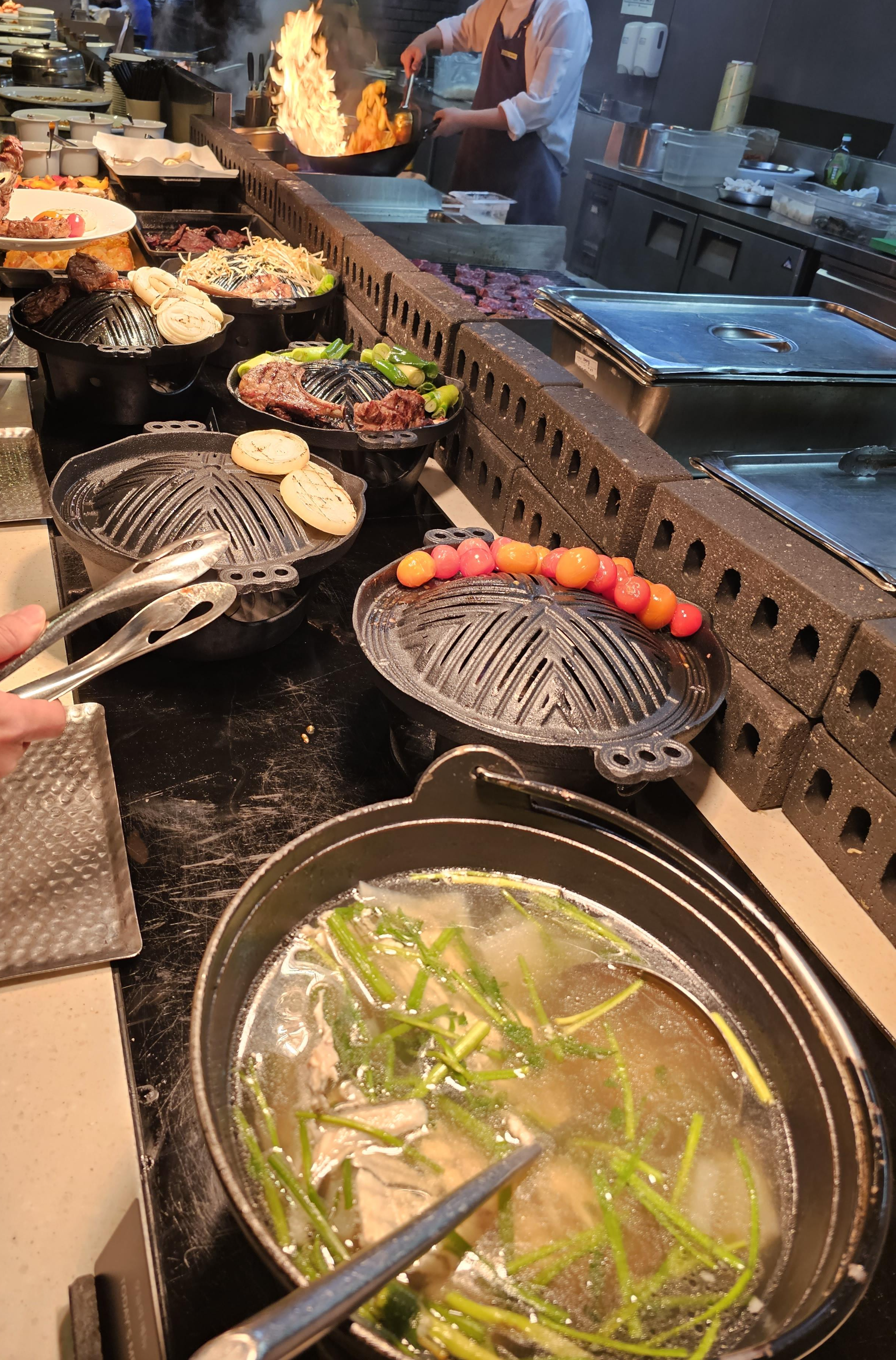 다른 호텔 뷔페와 비교하면, 업장의 크기나 음식의 가짓수는 약간 적은 것 같습니다. 그래도 지하철역과도 가까워서 좋았고, 전체적으로 고기가 맛있었고, 초밥도 좋았습니다. 네이버 예약 시 할인도 가능한 것 같으니 가격도 괜찮았던 것 같습니다.